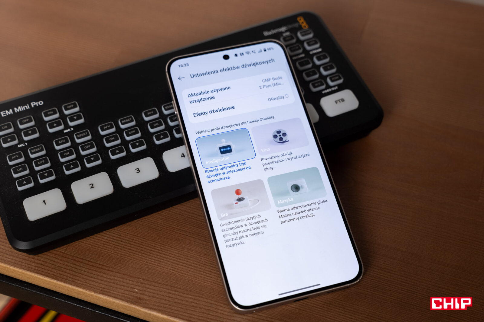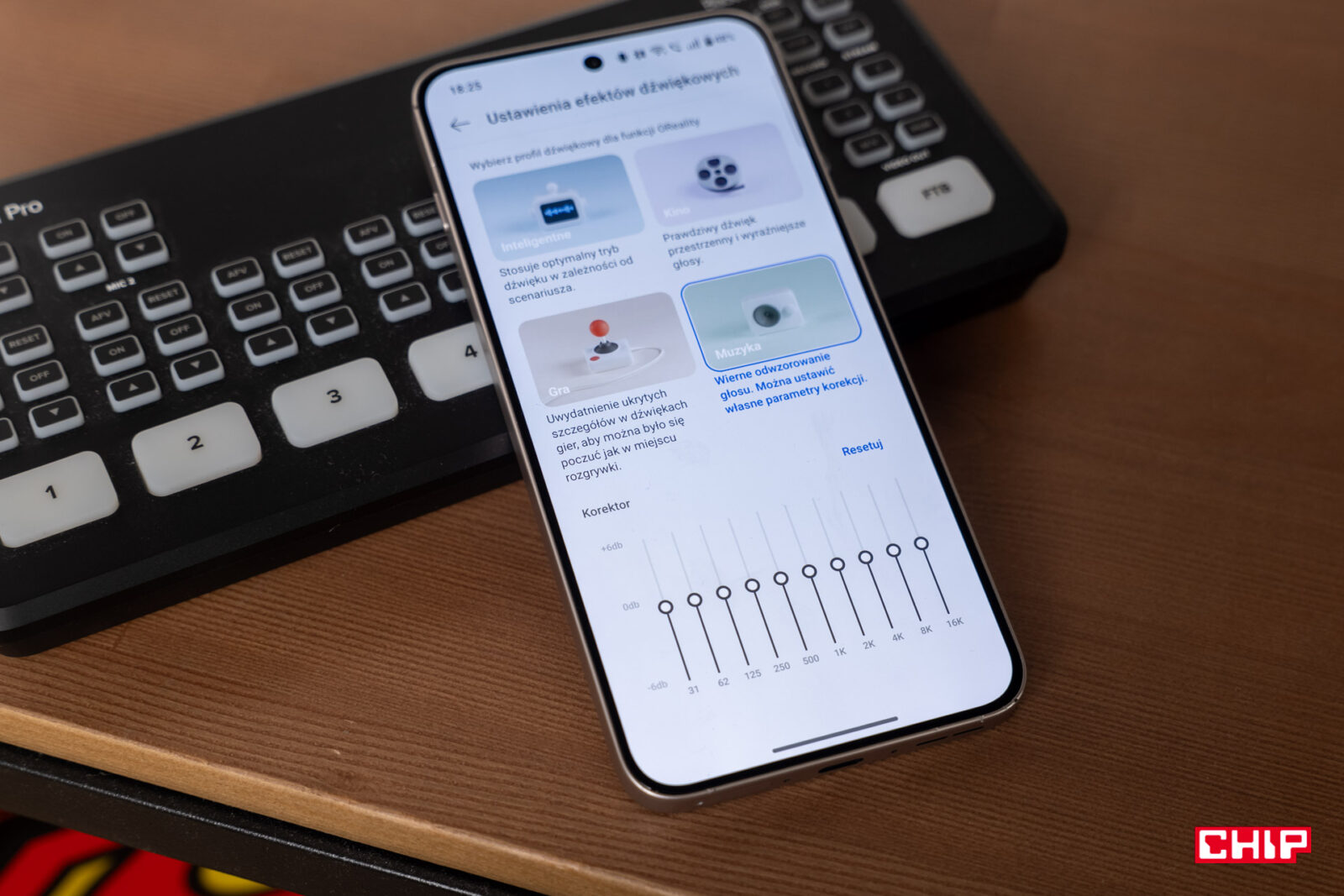 OnePlus Nord 5, jak przystało na telefon kosztujący czterocyfrową kwotę w 2025 roku, oferuje system głośników stereo. Wraz z nim producent zadbał o zestaw ustawień, które personalizują doświadczenia związane z dźwiękiem. Przy korzystaniu z głośnika możemy wybrać jedno z czterech zautomatyzowanych ustawień w zależności od odtwarzania filmu, gry czy muzyki lub ustawienie inteligentne. Po założeniu słuchawek telefon dodaje opcję korektora graficznego z kilkoma suwakami. Oprócz tego znajdziemy tu wirtualizację dźwięku przestrzennego, ale należy traktować to jako dodatek.