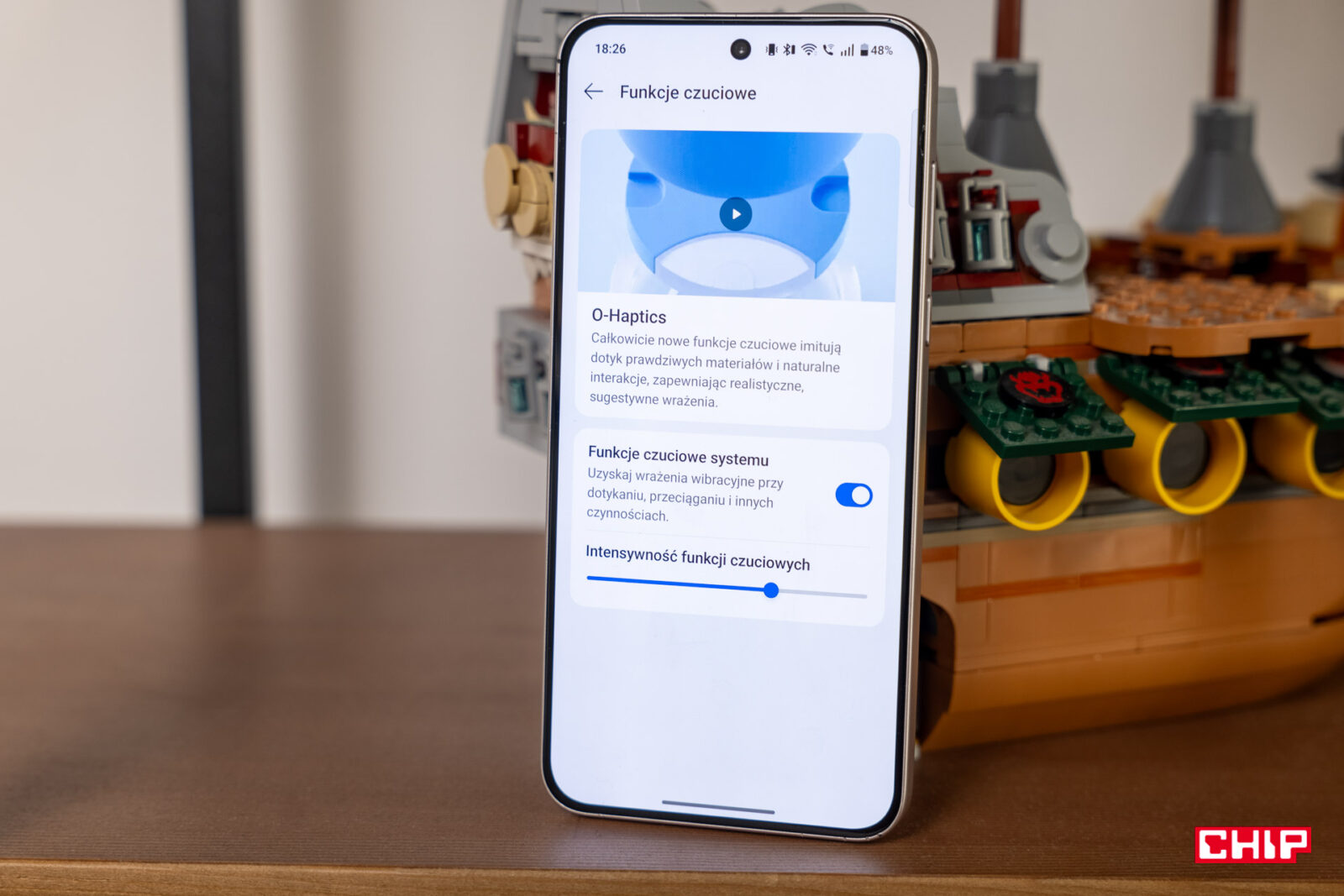 Lepiej wypadają przestrzenne wibracje, które w tym smartfonie nie są ani za głośne, ani za ciche, a do tego odznaczają się precyzją przy operacjach związanych z dotykiem. Ich moc możemy wyregulować w ustawieniach i dzieje się to bardzo płynnie. Producent nie żałuje okazji, byśmy mogli poczuć pracę silnika haptycznego, ale w razie potrzeby możemy też te wszystkie dodatkowe ustawienia wyłączyć.