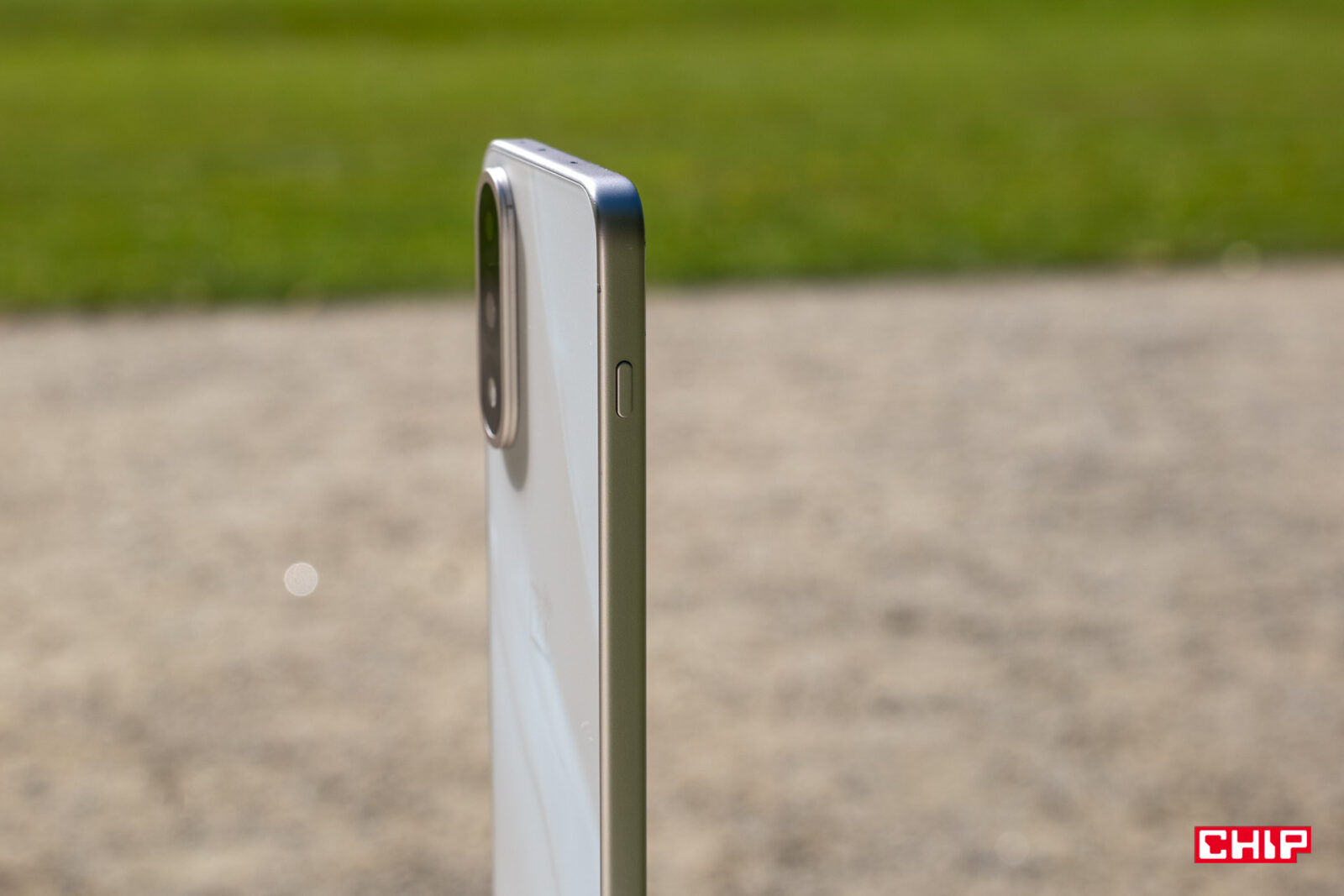 Patrząc na OnePlusa Nord 5 widzę smartfon elegancki, zwłaszcza w białym wariancie. Tył błyszczy się w świetle słonecznym, przypominając falującą satynę jedwabną lub (co sugeruje producent) marmur. Wygląda to dobrze i tworzyło nie zebrało zauważalnych rys. Te po upadku przyjmie najpewniej wyspa aparatów w stylu bliższym Huaweiowi P30 Pro aniżeli nowszym smartfonom. Nostalgia w natarciu, ale szkoda, że wydatna, srebrna ramka nie została wykonana z trwalszego materiału – przy pierwszym upadku na piasek zgarnęła dwa wgłębienia. Dobrze, że szkło chroniące aparaty nie doznało uszczerbku.