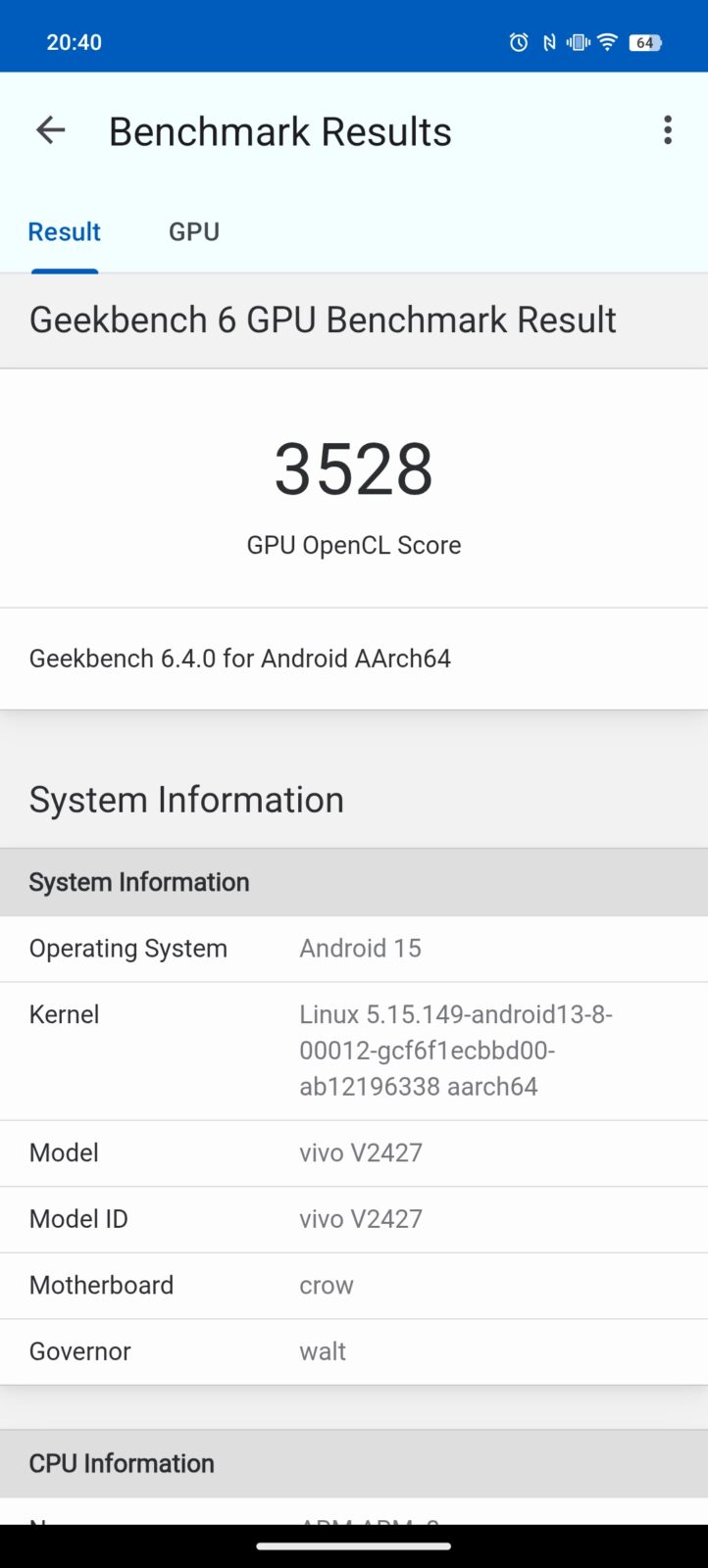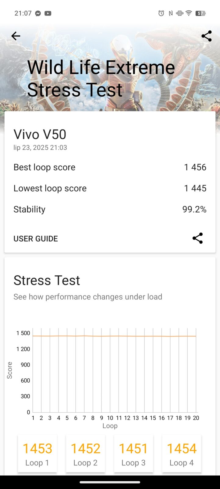 Wyniki benchmarków nie będą zatem imponujące, natomiast trzeba oddać vivo jedno – stworzyli smartfon, któremu nie doskwierają problemy wieku dziecięcego, jakie mogły przynieść inne układy. Zastosowany zestaw dla większości osób wystarczy do płynnego uruchamiania gier, także w 60 klatkach, choć bez graficznych wodotrysków. Na co dzień telefon miewa momenty, gdy widzimy dłuższe animacje, natomiast przez wszystkie procesy przechodzi płynnie i bez przycięć. Do tego dobrze zarządza pamięcią operacyjną i nie wyłącza aktywnych procesów z wyjątkiem aplikacji jakdojade, która z jakiegoś powodu wyłączała się bardzo szybko po przejściu do innych programów.