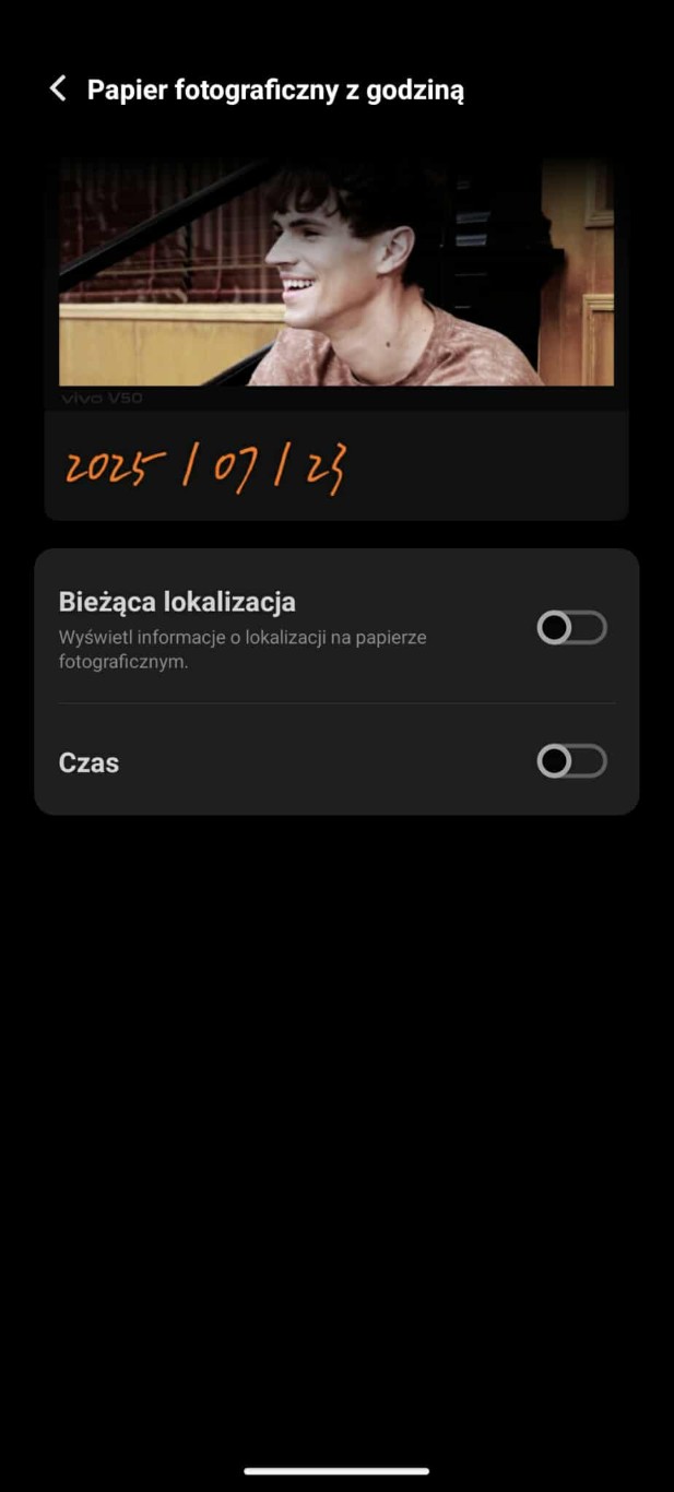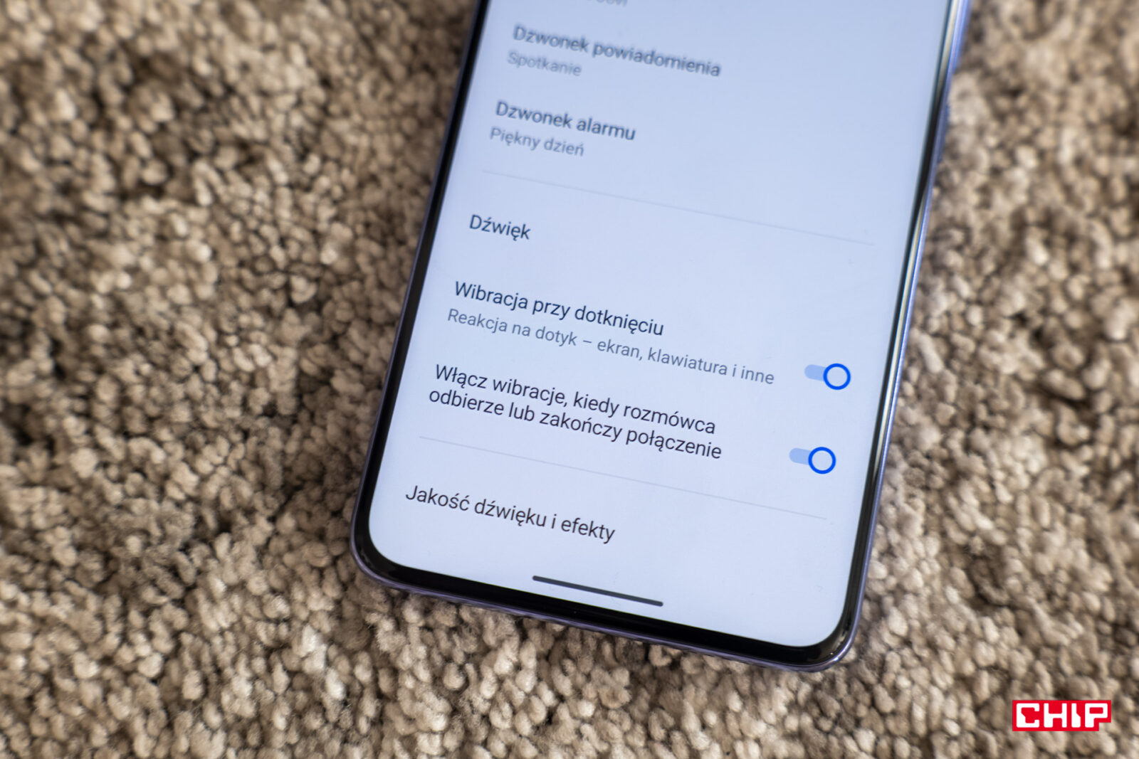To ciekawe, że vivo V50 kompletnie odpuszcza kwestię wibracji. Te nie są ani trochę przestrzenne, silnik jest głośny i trzeszczy całym telefonem, zamiast wysyłać konkretne sygnały. Nie dostajemy opcji personalizacji tych doświadczeń, a jedynie ustawienie to przełącznik wibracji dla dotknięć i dla połączeń. Przez niską jakość i wibrowanie całej obudowy smartfon doskonale służy jako poranny budzik, jeśli nie chcemy ustawiać dźwięku. Szkoda, że postawiono na rozwiązanie rodem z najtańszych urządzeń.