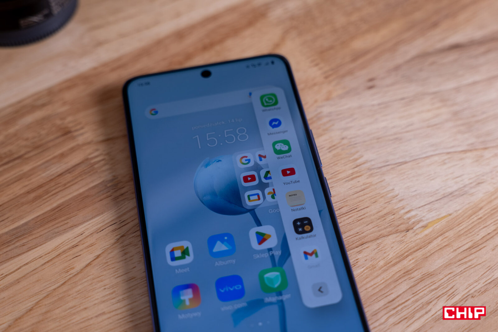To wszystko w charakterystycznej dla chińskich rozwiązań oprawie, nieco mniej świeżej niż podobne w założeniach ColorOS, ale za to bez kopiowania dynamicznej wyspy z iOS. Można ich nie lubić, ale nie można odmówić im cukierkowatości. W vivo V50 producent zadbał o to, by jednocześnie nie brakowało znanych rozwiązań, jak boczny pasek ze skrótami do aplikacji czy pasek alfabetu w szufladzie aplikacji (który jednak lubił trochę nie działać). Poza tym cieszą mnie detale pokroju wyboru widoku aktywnych procesów oraz przycisk do szybkiego usuwania aplikacji.