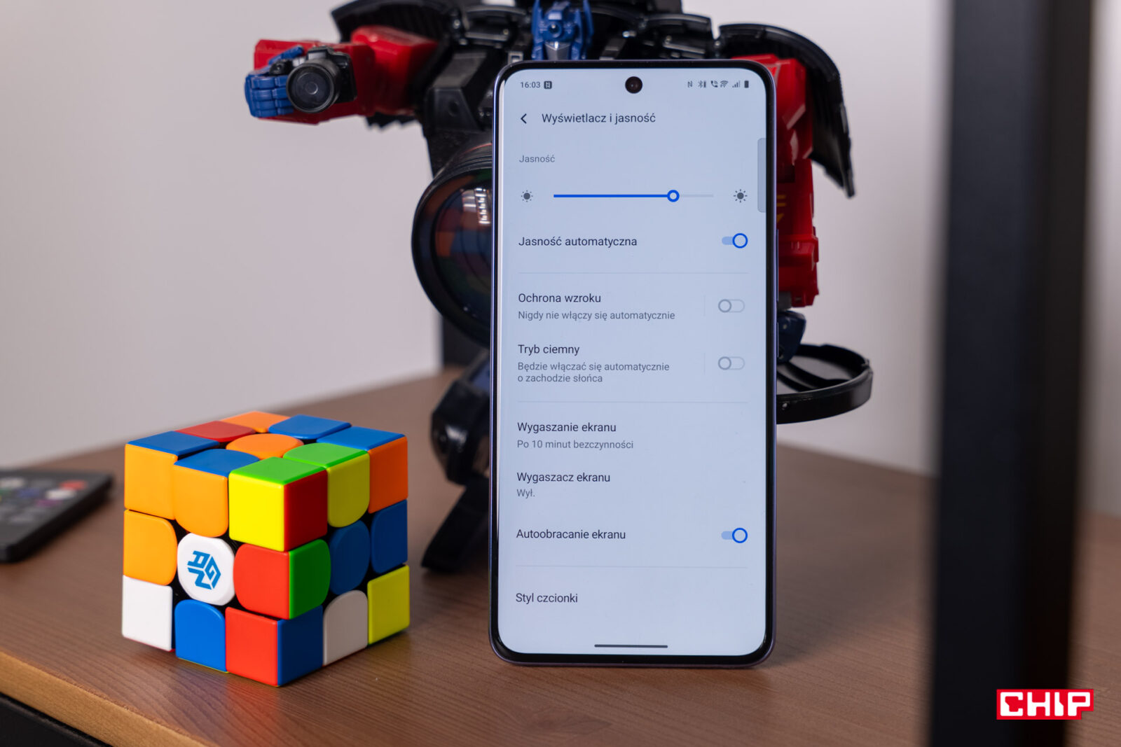 Tak też wygląda sprawa z metodami odblokowywania ekranu. Umieszczony dość nisko czytnik linii papilarnych korzysta z rozwiązania optycznego, ale i tak jest szybki i celny. Zdecydowana większość przyłożeń palca kończy się odblokowaniem ekranu. Równie szybko działa oparty o przednią kamerę skaner twarzy. To rozwiązanie może też podświetlać ekran, by odblokować urządzenie w ciemniejszych miejscach, ale nie radzę korzystać z niego o poranku.