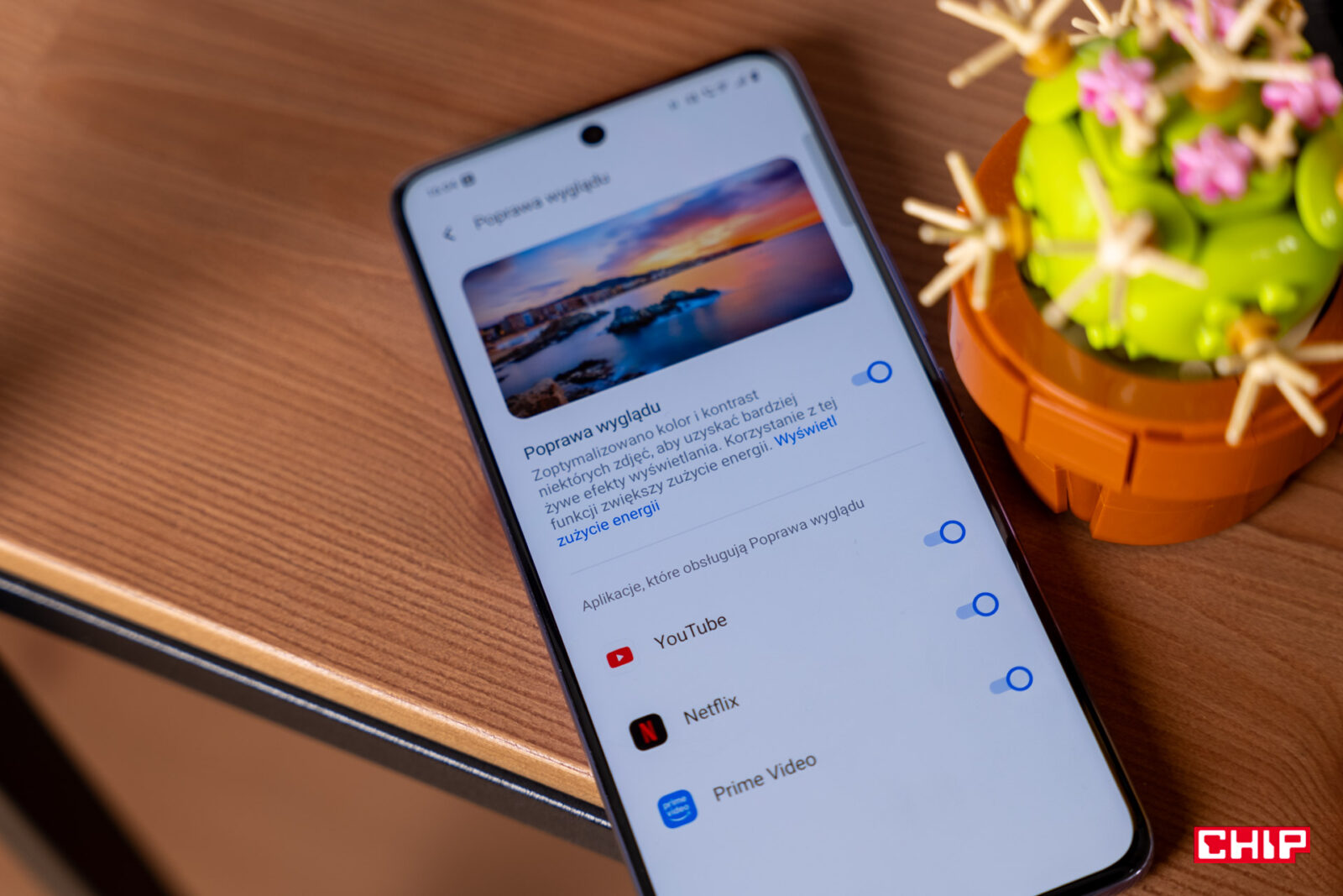 Trudno przyczepić się do vivo V50 o cokolwiek, co dotyczy ekranu. Ma on dobre kąty widzenia, żywe kolory oraz Musicie jedynie pamiętać o tym, że kolory nie każdemu się spodobają. Mnie nie spodobały się też ustawienia teoretycznie poprawiające jakość obrazu w serwisach streamingowych, bo nie dały w sumie nic pozytywnego, za to efekt sztucznego wyostrzenia i rozjaśnienia materiałów nie był przyjemny. Ale i bez niego to dobry ekran, co do którego nie mogę mieć większych zastrzeżeń.