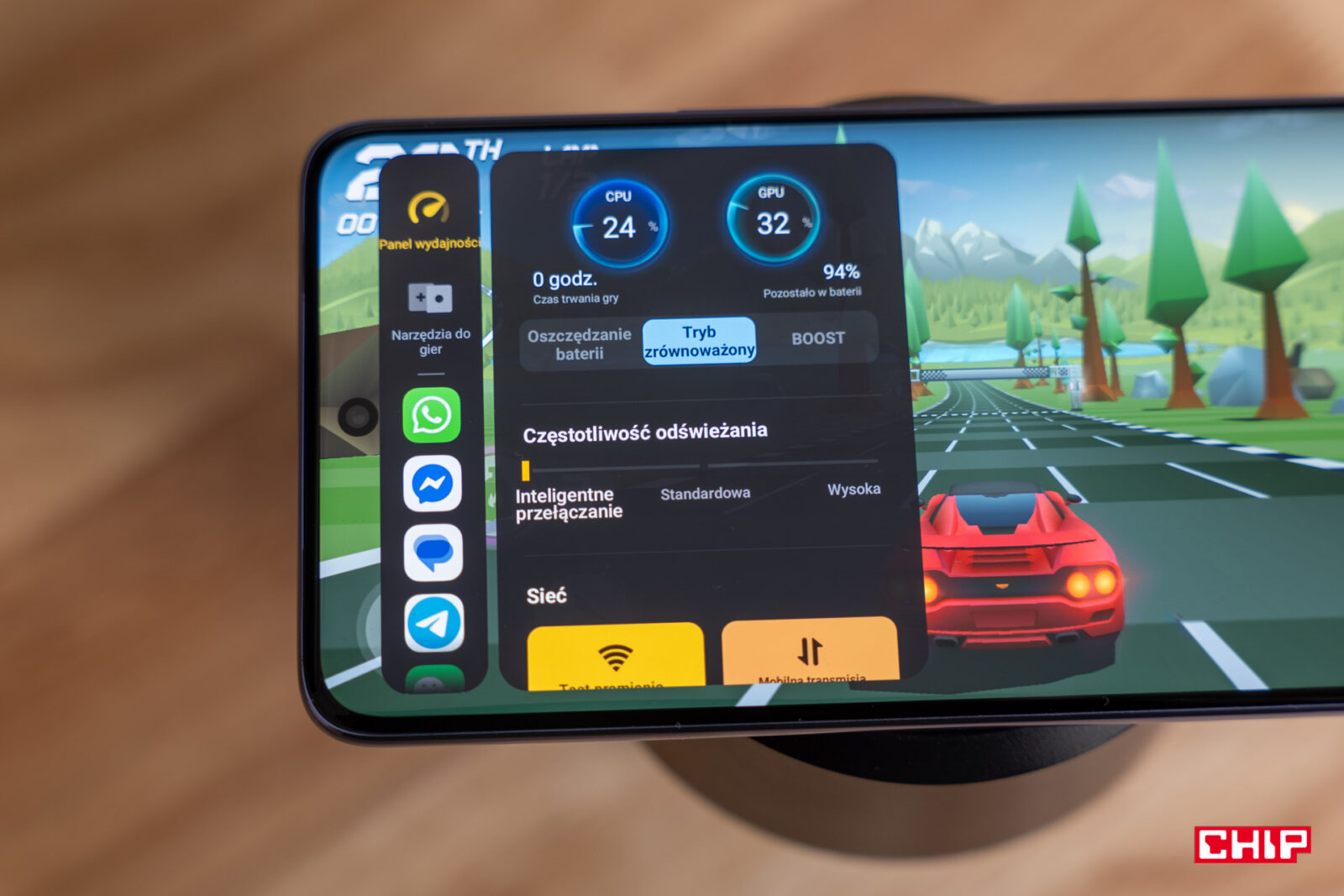 Jeśli chodzi o gry, tutaj smartfon ma tendencję do nagrzewania się przy dłuższych sesjach, ale nie w sposób nieznośny i nie zmusiło to mnie do przerywania rozgrywki. W urządzeniu znajdziemy coś, co przetłumaczono jako silnik akceleracji gier. Jest on częścią narzędzia do gier, w którego opcjach znajdziemy zarządzanie powiadomieniami i połączeniami, nagrywaniem ekranu, ale także automatyczną rozgrywką czy sterowaniem za pomocą akcelerometru (całkiem przyjemne). To wszystko w nieco przaśnej szacie graficznej, ale tak to wygląda u vivo.