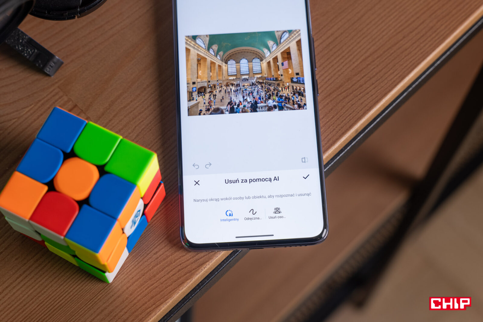 Funkcji AI jest nieco mniej niż u konkurencji, ale te, które są, wydają się sensownie rozmieszczone. W przypadku zdjęć dostajemy pakiet AI Image Lab, który w zasadzie zawiera trzy funkcje. W dokumentach potrafi usuwać cień i robi to skutecznie. Może też, jak u konkurencji, kasować ze zdjęć niechciane osoby lub obiekty. Rozwiązanie działa w kratkę i nadal nie jest czymś, co można polecić przy większych poprawkach. Nadaje się do usuwania niewielkich detali w dalszym planie, ale gdy są to na przykład osoby stojące przed innym obiektem, rozwiązanie nieco się gubi. Nie przemawia do mnie też rozwiązanie do poprawiania zdjęć portretowych w niższej rozdzielczości.
