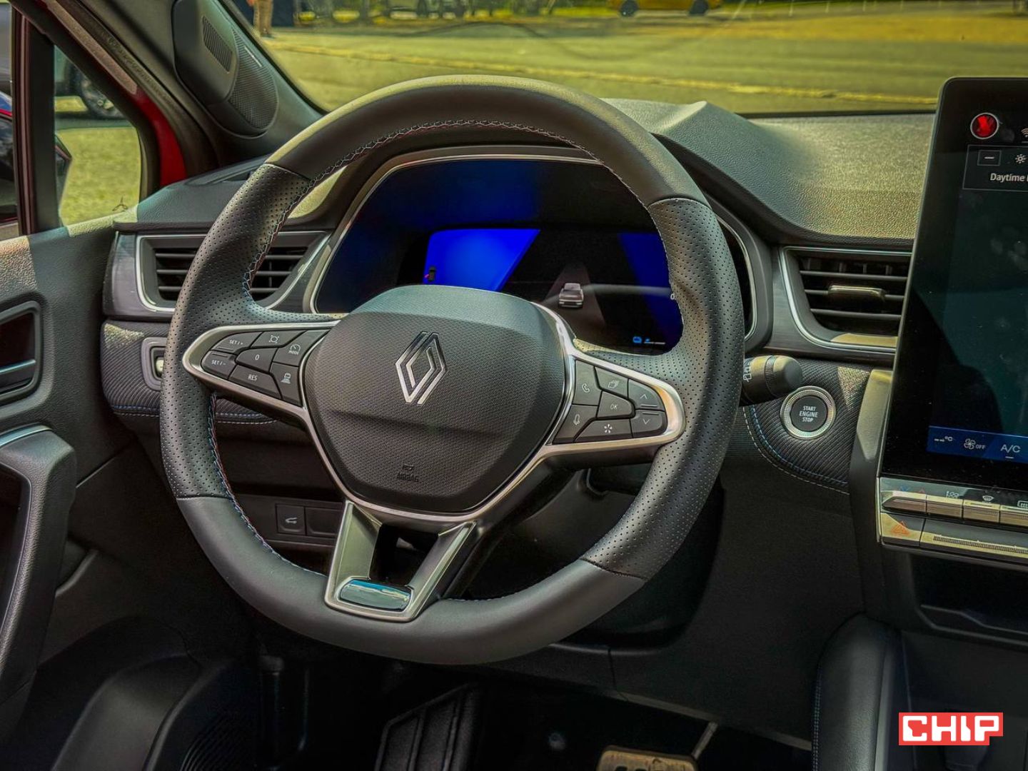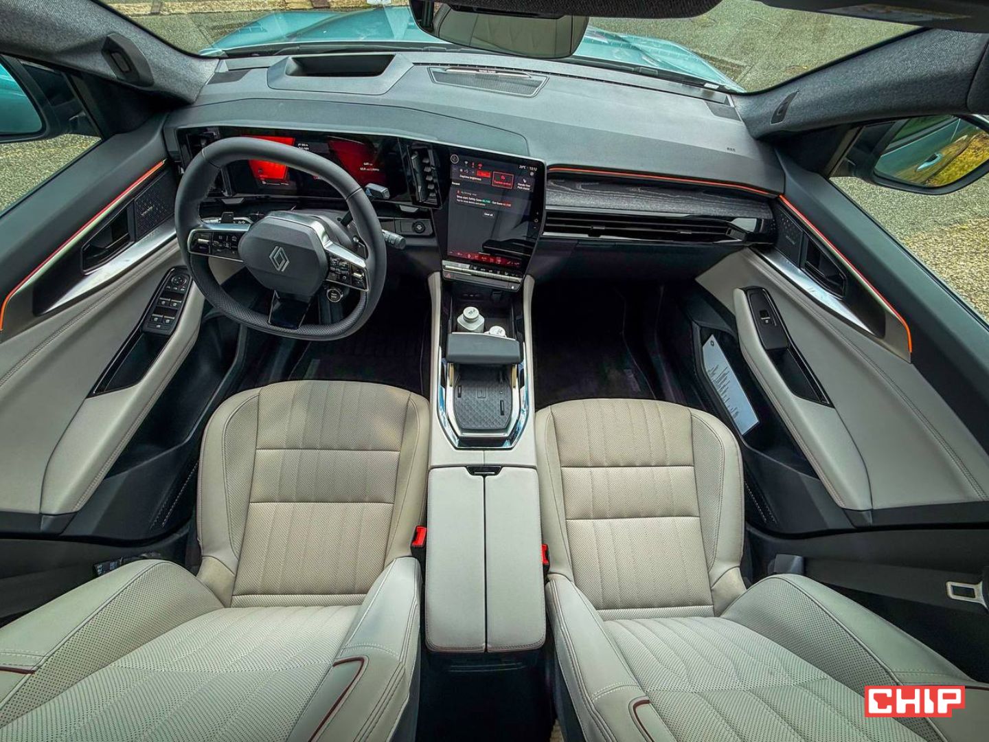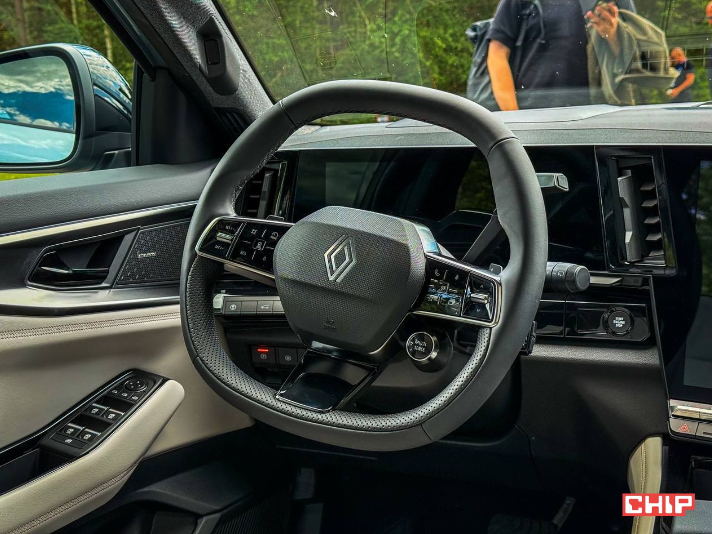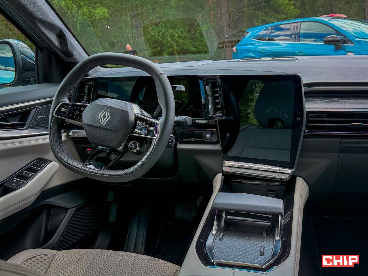 Platforma CMF-CD oferuje technologie takie jak system czterech kół skrętnych 4Control advanced, który znacząco wpływa na prowadzenie dużego SUV-a — i to faktycznie robi różnicę, bo gdy po Espace przesiadłem się za kierownicę Symbioza, miałem wrażenie, że jest on zaskakująco mało skrętny. Dzięki temu systemowi tylne koła skręcają w przeciwnym kierunku do przednich przy niskich prędkościach, zmniejszając średnicę zawracania do zaledwie 10,4 metra. Przy wyższych prędkościach tylne koła skręcają w tym samym kierunku co przednie, zwiększając stabilność auta.