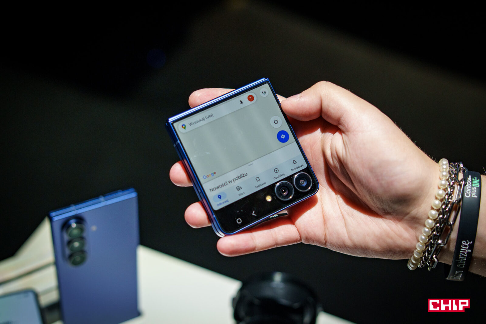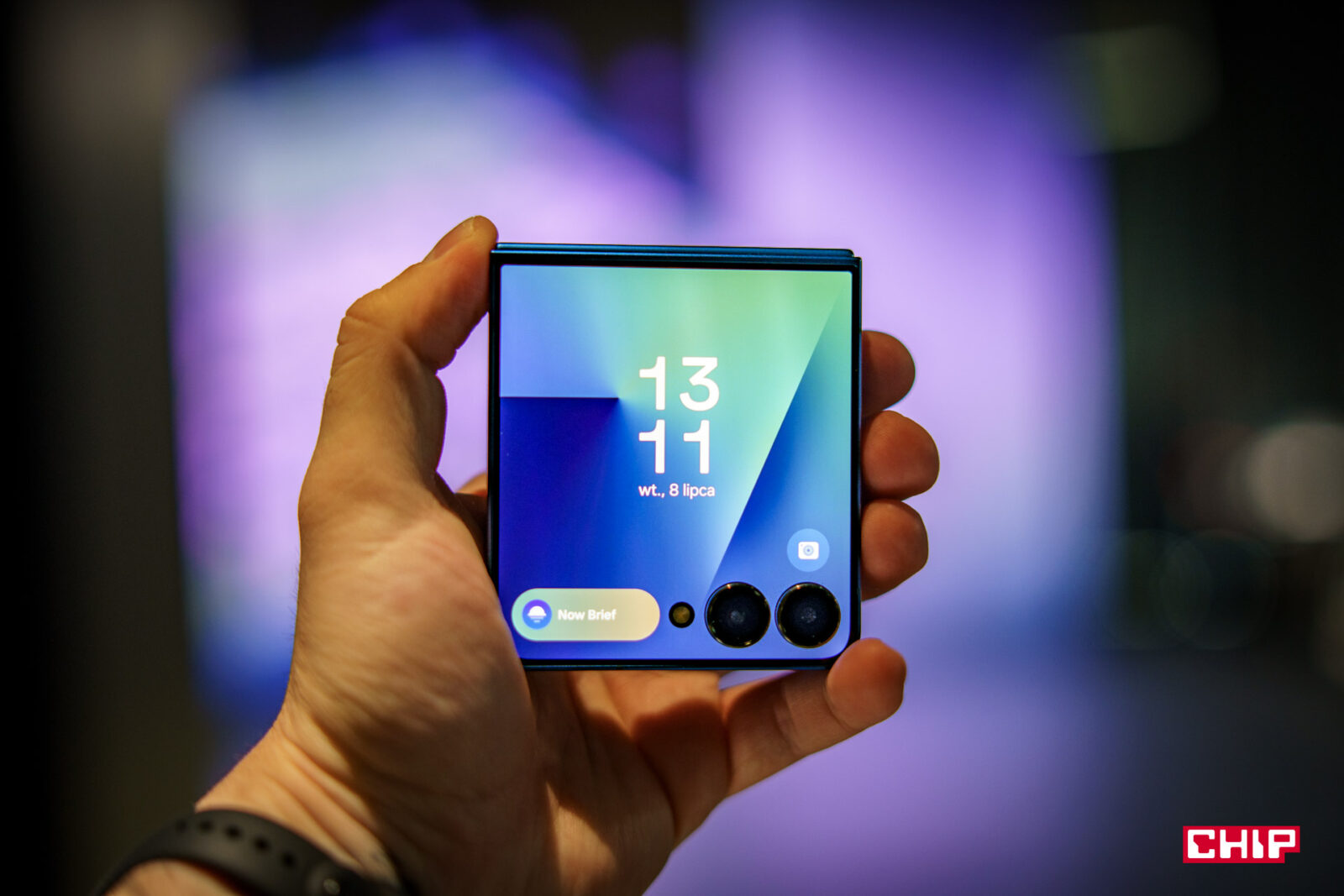 Główna zmiana w nowym Flipie7 to ekran zewnętrzny. Nie ma on już kształtu folderu, a zajmuje całą powierzchnię przedniej klapki. Ma przekątną 4,1 cala, wyświetla obraz o rozdzielczości 948 x 1048 pikseli ze 120 Hz odświeżaniem obrazu i oferuje jasność do 2600 nitów.