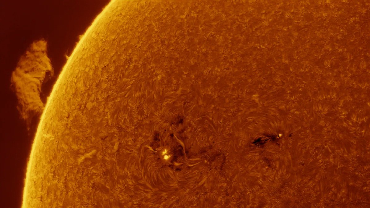 Obaj prowadzili obserwacje naszego żółtego karła przed kilkoma dniami, 12 lipca, uwieczniając coś, co można porównać do kosmicznego potwora. Wszystko ze względu na nietypowy kształt przybrany przez chmurę plazmy wyemitowaną przez Słońce. Taką okazję wykorzystali Michael Jäger, Simon Metcalfe oraz David Wilson.