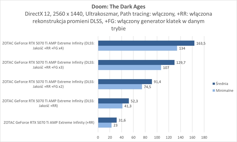 W testach wykorzystaliśmy platformę testową opisaną tutaj. W przypadku gry Doom: The Dark Ages skorzystaliśmy z wbudowanego benchmarku Las Abysalny.