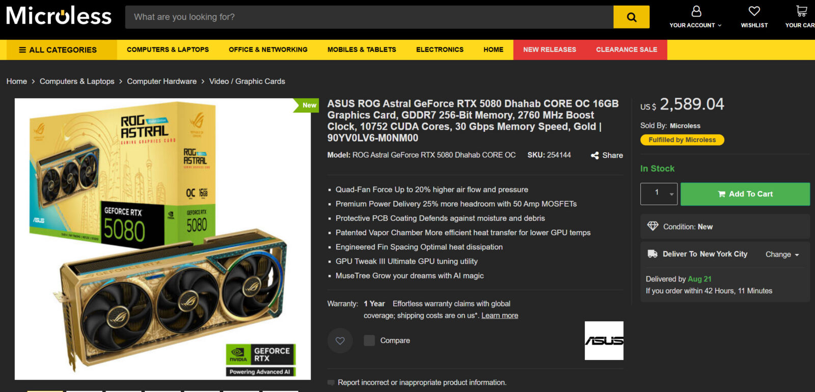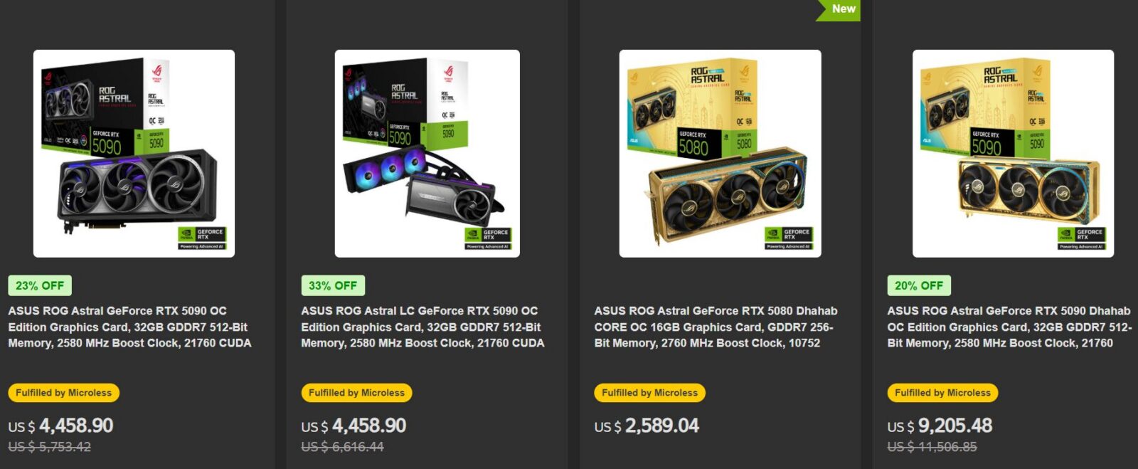 Rynek sprzętu komputerowego potrafi zaskakiwać ekstremami, a najnowsza propozycja z Dubaju to najlepszy tego dowód. Tamtejszy sklep Microless wystawił na sprzedaż prawdopodobnie najdroższe karty graficzne dla zwykłych użytkowników. ASUS ROG Astral RTX 5090 Dhahab Edition kosztuje obecnie 9250 dolarów, co po przeliczeniu daje około 33 800 złotych. Co ciekawe, to cena po obniżce, ponieważ pierwotnie producent wycenił ten model na ponad 12 369 dolarów, czyli blisko 45 tysięcy złotych. Nieco bardziej przystępną propozycją w tej limitowanej serii wydaje się RTX 5080 Dhahab CORE OC dostępna za 2589 dolarów, czyli około 9460 złotych. Choć kwota wciąż zapiera dech w piersiach, stanowi wyraźny kontrast wobec flagowego modelu. Przyznam szczerze, że ceny te wywołują mieszane uczucia nawet wśród zapalonych entuzjastów sprzętu gamingowego.