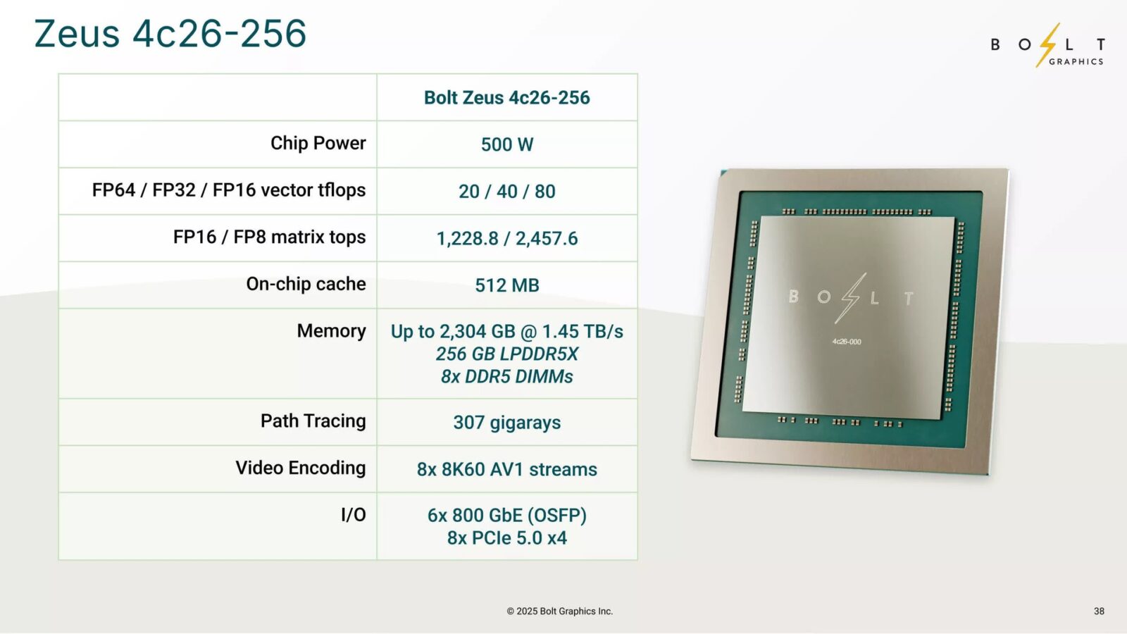 Bolt Graphics to startup z Kalifornii, który chce wymyślić układy graficzne na nowo. Ich sztandarowym produktem mają stać się układy Zeus, stworzone z myślą o grach, renderowaniu oraz symulacjach rodem z superkomputerów. Wszystko to dzięki wbudowanym interfejsom Ethernet, pamięci, którą można ulepszać oraz optymalizacji pod obliczenia FP64. Do tego architektura dla zestawu instrukcji opiera się na otwartym standardzie RISC-V ISA. To wszystko przy pozostawieniu jednostek do teksturowania (TMU) oraz jednostek do operacji rastrowych (ROP) – w teorii zapowiada się to na ciekawą konkurencję na rynku konsumenckich układów graficznych.