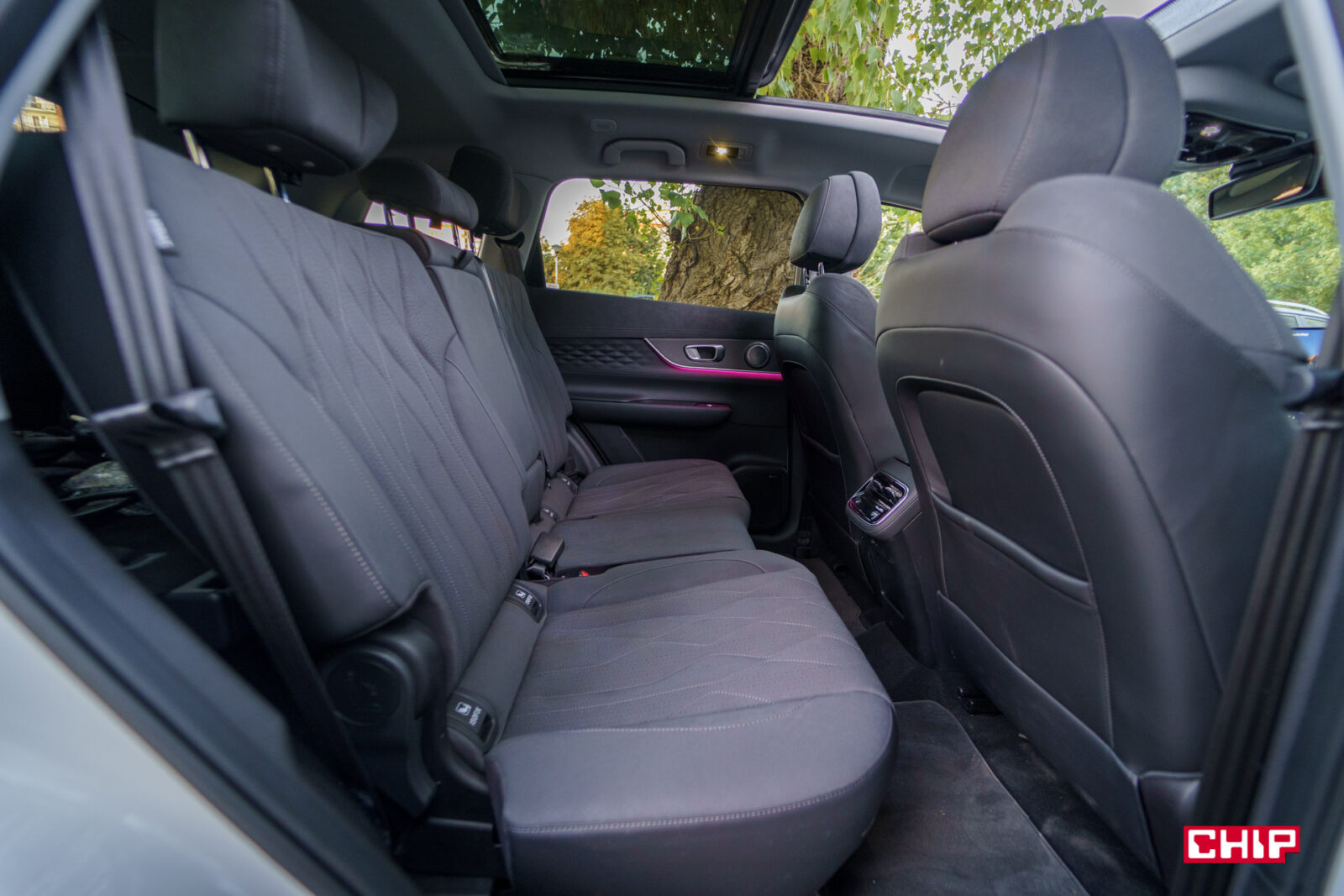 Niestety przez niezidentyfikowany błąd w zapisie plików nie możemy Wam pokazać ilości miejsca w trzecim rzędzie. Musicie więc zaufać mi na słowo, że nie ma tragedii. Przy 183 cm wzrostu i lekkim przesunięciu drugiego rzędu foteli do przodu, da się tu całkiem komfortowo podróżować. Choć sugerowałbym postoje co 1,5-2 godziny, bo siedzi się nisko, więc można trochę zdrętwieć. Niemniej dwie dorosłe osoby można tam śmiało posadzić.