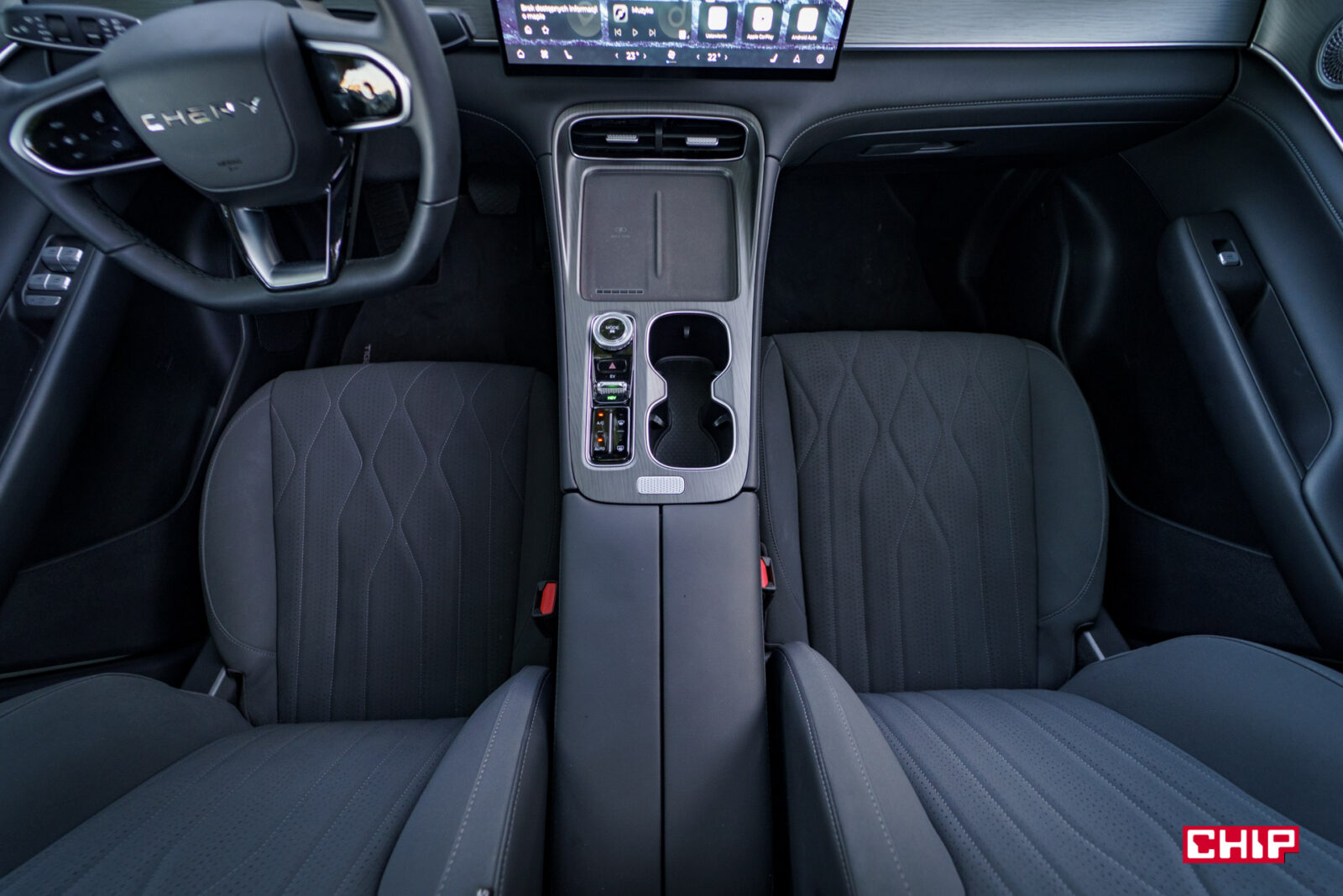 Chery Tiggo 8 PHEV w pierwszej kwestii spisuje się wzorowo. W drugiej bardzo przyzwoicie, bo interfejs jest prosty, odpowiednio przetłumaczony na język polski, choć oczywiście obsługa wszystkiego dotykiem to chyba jest coś, do czego jeszcze długo się nie przyzwyczaimy. Poza tym auto jest wygodne, dobrze się prowadzi, mało pali, ma świetnie wykonane wnętrze i choć nie do końca rozumiemy ideę fotela pasażera, to poza tym cały środek jest zdecydowanie na plus. No i cena… Nie ma co się oszukiwać, trudno jest znaleźć za takie pieniądze tak wyposażone auto europejskiego producenta.