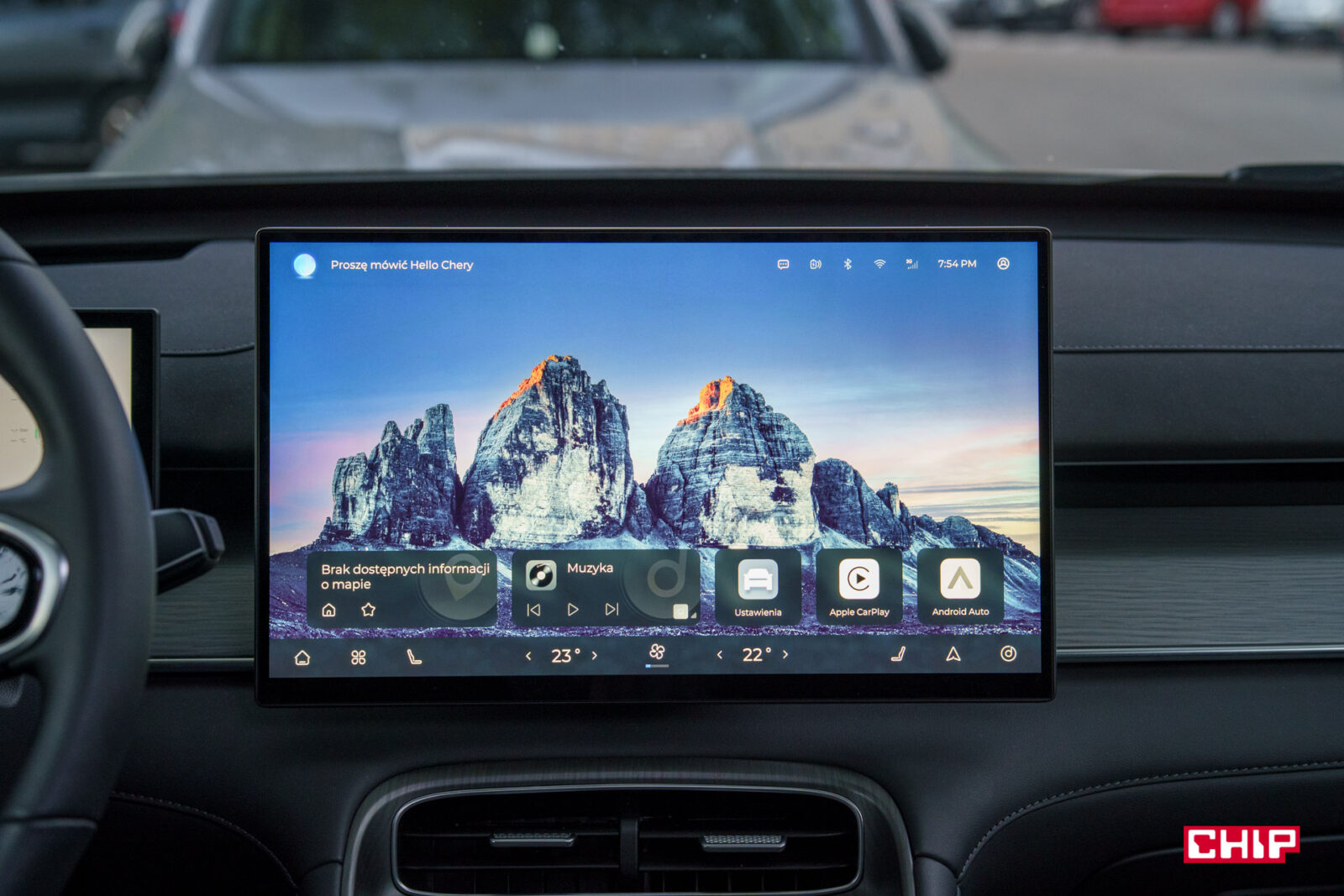 Obsługa Chery Tiggo 8 odbywa się na ogromnym ekranie środkowym o przekątnej 15,6 cala i wysokiej rozdzielczości 2560 x 1140 pikseli. Jakość obrazu jest świetna. Jest bardzo jasny, kolorowy, ze wzorowymi kątami widzenia, a i sam interfejs jest bardzo dobrze dopasowany do wysokiej rozdzielczości.