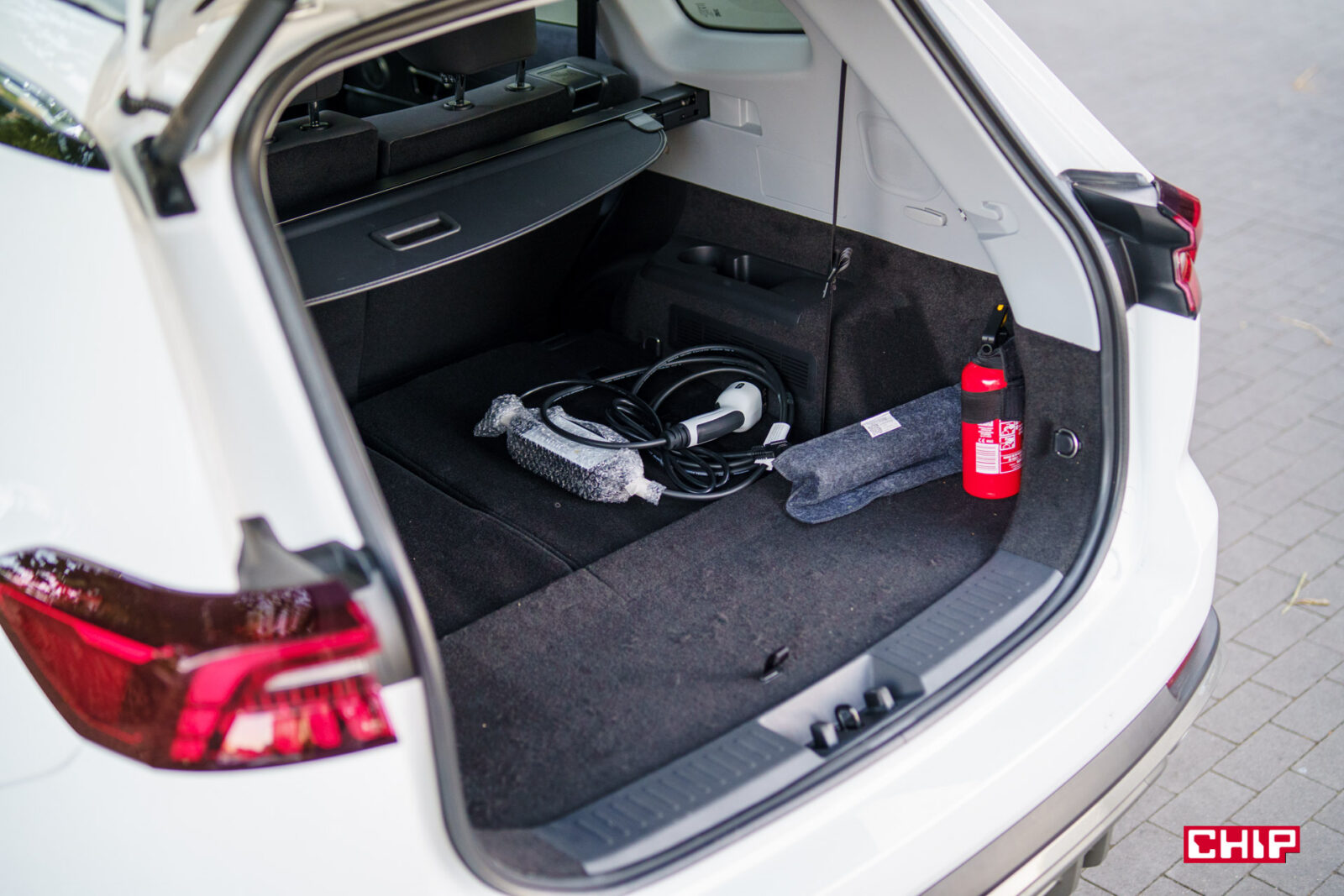 Chery Tiggo 8 ma ogromny bagażnik i jego pojemność oczywiście różni się w zależności od ułożenia siedzeń. Przy rozłożonym trzecim rzędzie to skromne 193 litry i tutaj kolanem da się wtedy upchnąć ze dwie walizki kabinowe. Po złożeniu trzeciego rzędu mamy ogromne 889 litrów i 1930 litrów po złożeniu wszystkich tylnych siedzeń. O ile więc nie potrzebujemy siedmiu miejsc, dostajemy potężną przestrzeń ładunkową.