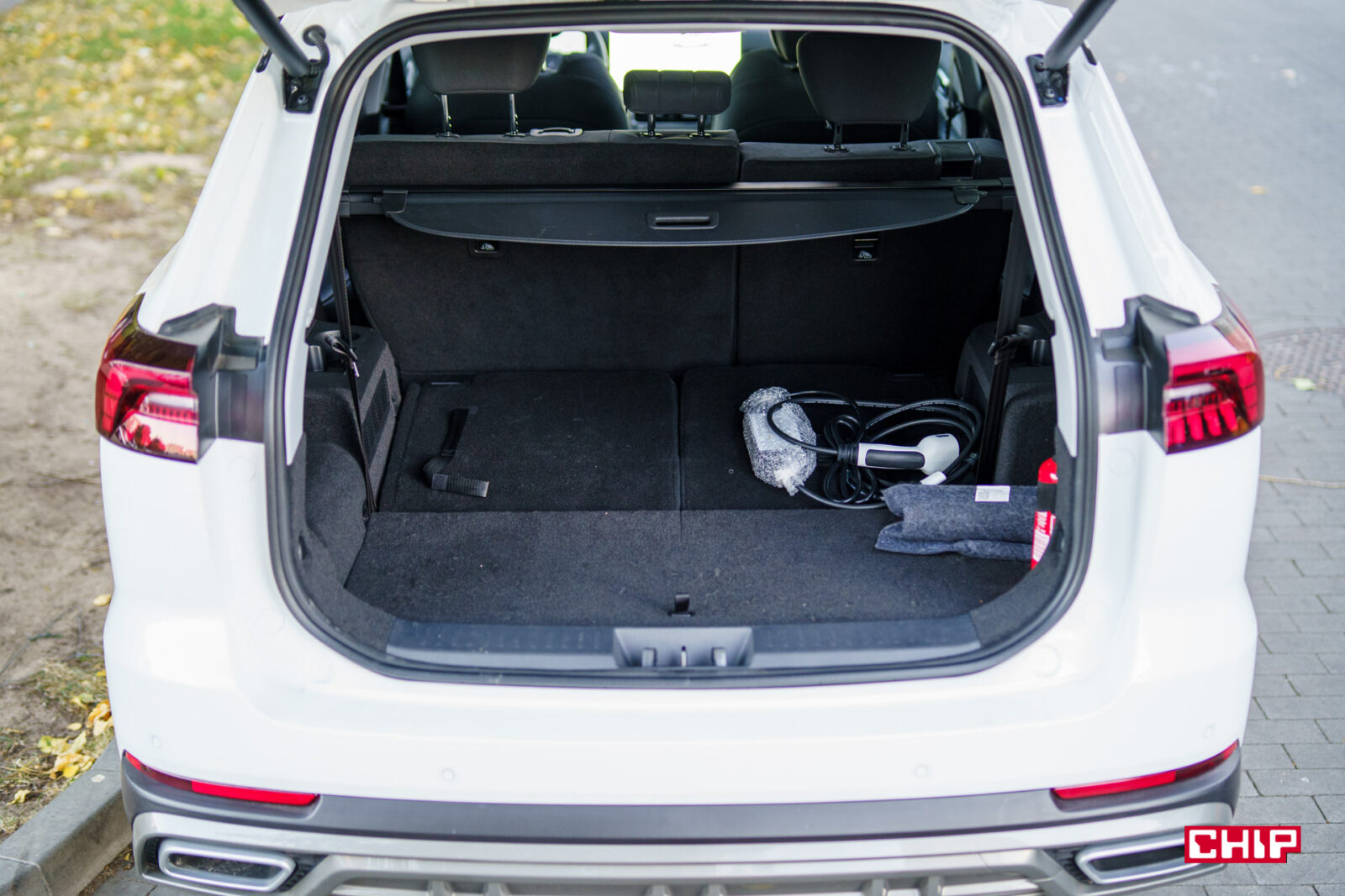 Z tył znajdziemy atrapy wydechów i tak, są to atrapy, ale przez to, że ich zaślepki są czarne i dosyć głęboko osadzone wyglądają jak prawdziwe. Co jest ciekawym rozwiązaniem. Nie mogło zabraknąć modnej listwy świetlnej i za nic nie mogę zrozumieć, kto wpadł na pomysł umieszczenie na klapie bagażnika okrutnie wielkiego napisu Plug-In Hybrid. To jest zdecydowanie za duże.