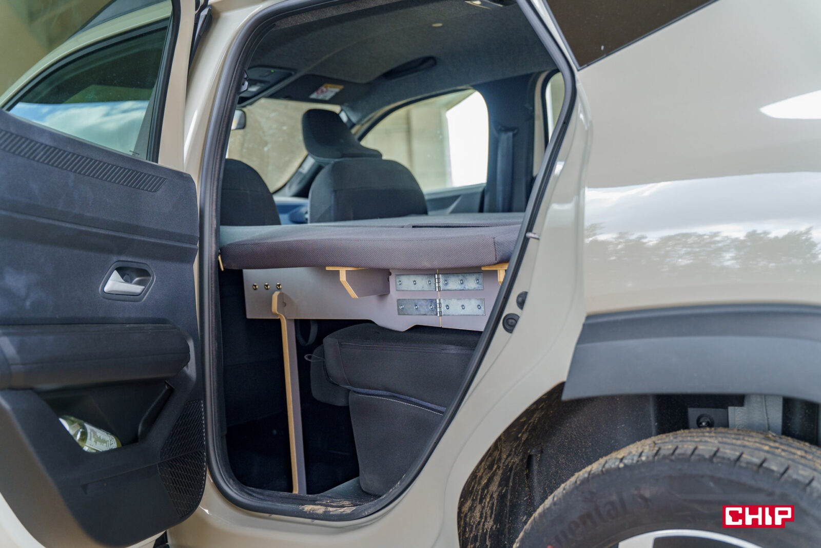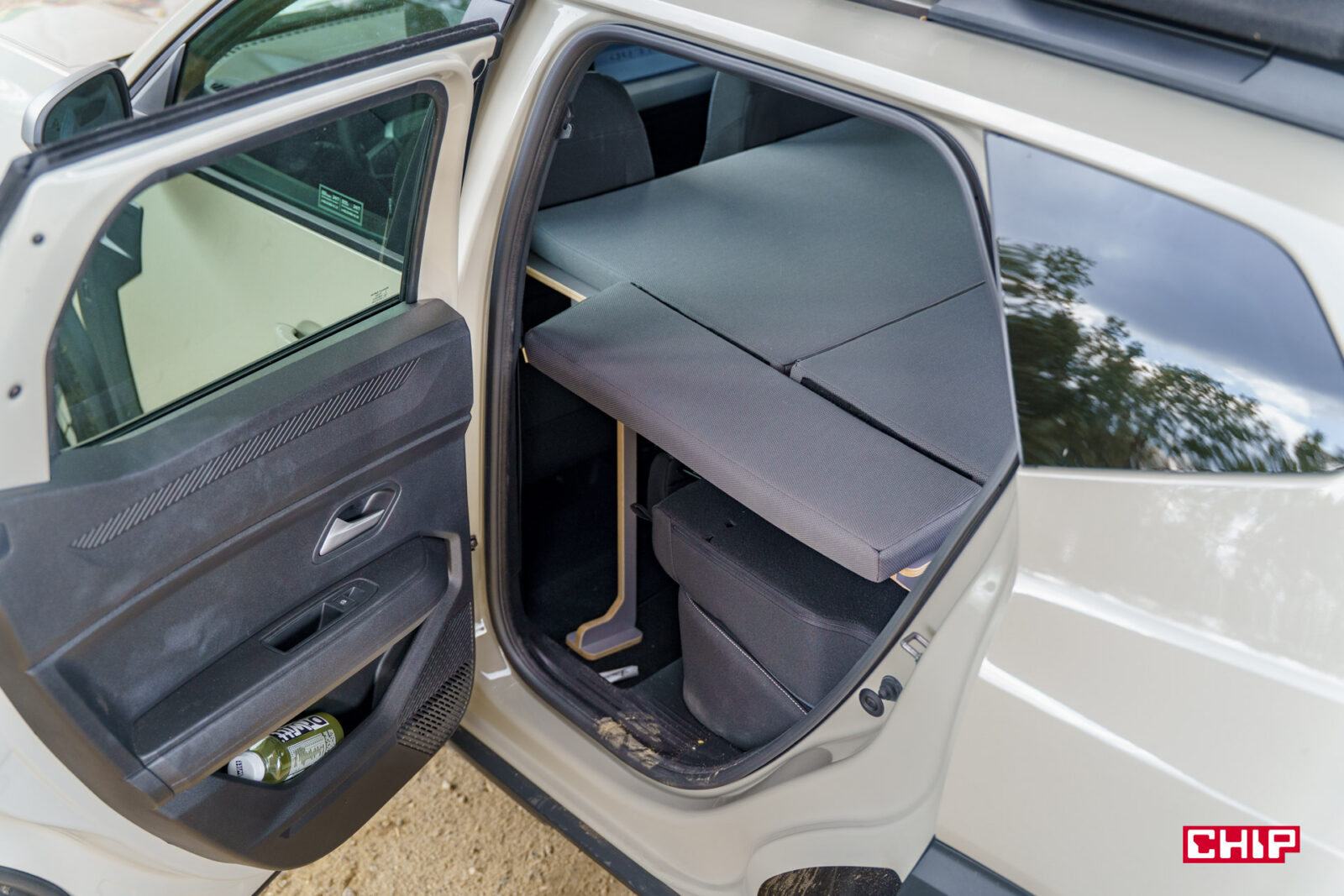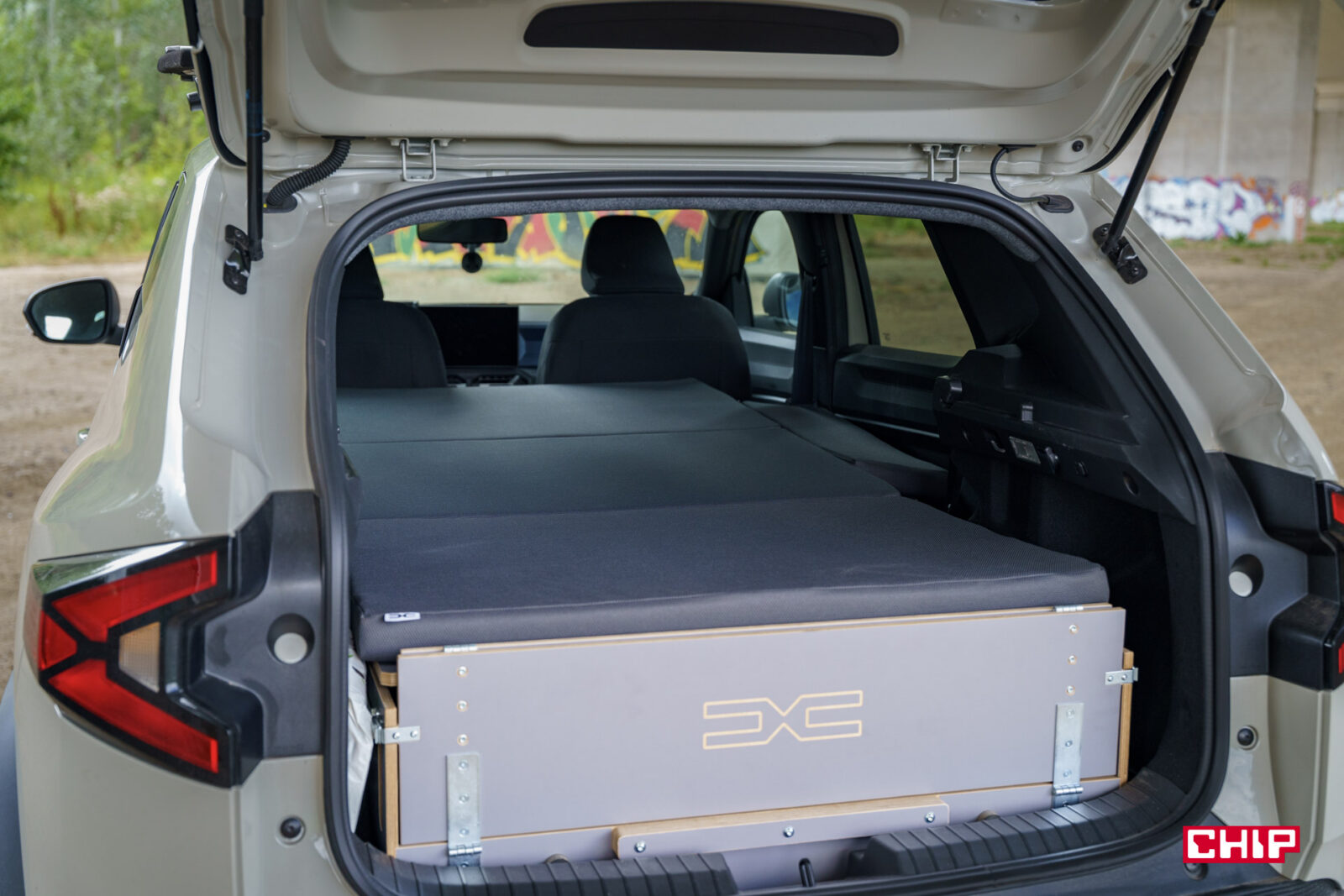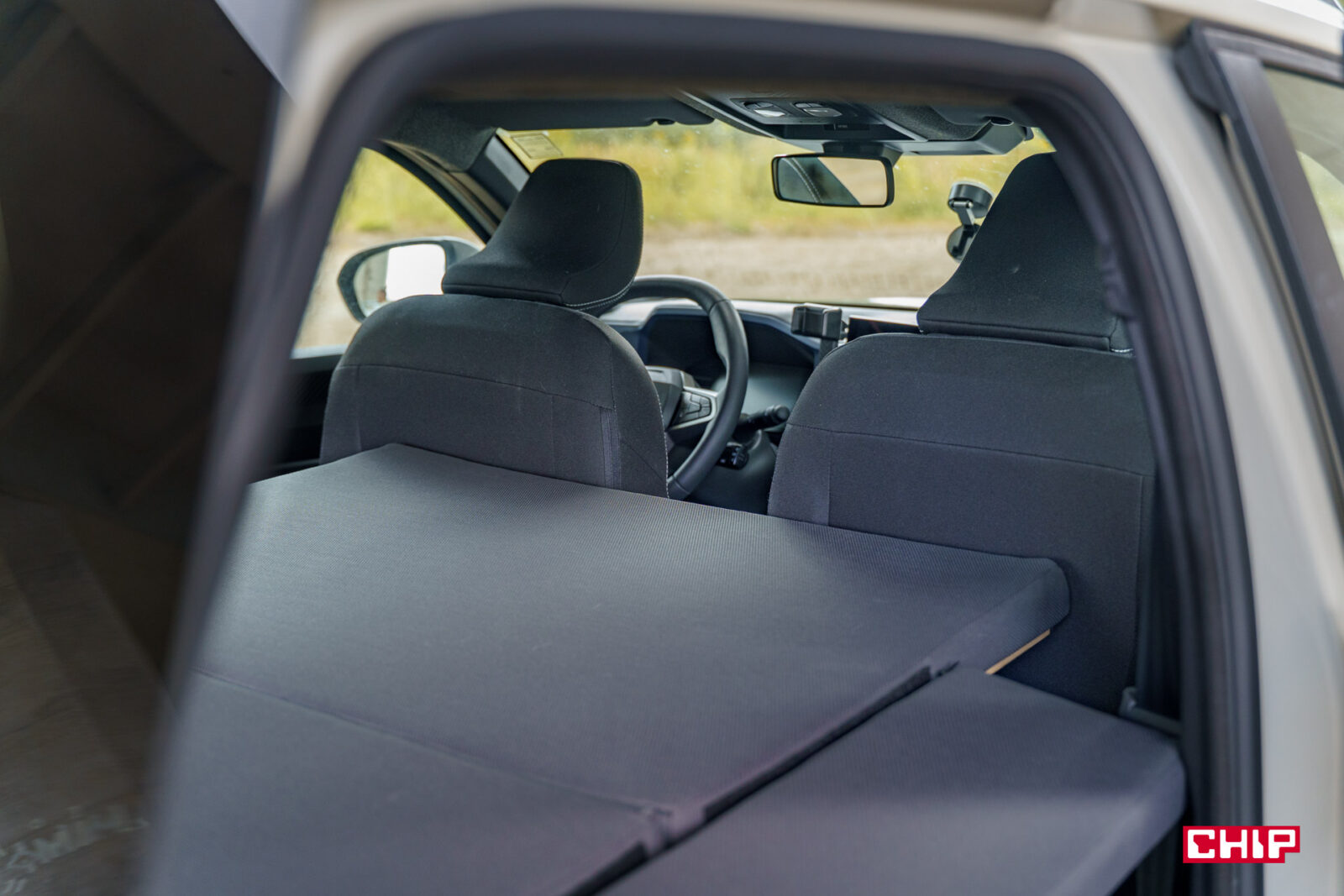 Składane łóżko kosztuje 5 790 zł. Dużo? Zdecydowanie, a cena i tak znacznie spadła w ostatnich miesiącach, bo jeszcze pod koniec zeszłego roku trzeba było za to zapłacić 7 150 zł. Przez „łóżko” mam na myśli samą rozkładaną skrzynię, bo materac musimy dokupić osobno — i ten kosztuje 1 055 zł (tutaj również pojawiła się obniżka ceny o blisko 500 zł). No, ale do pełni wygody, warto zainwestować jeszcze w takie rzeczy jak matowe rolety zaciemniające (825 zł) oraz — dla lepszego kempingu — namiot mocowany do tylnej klapy. To kolejny koszt, również wysoki, bo 1 600 zł.