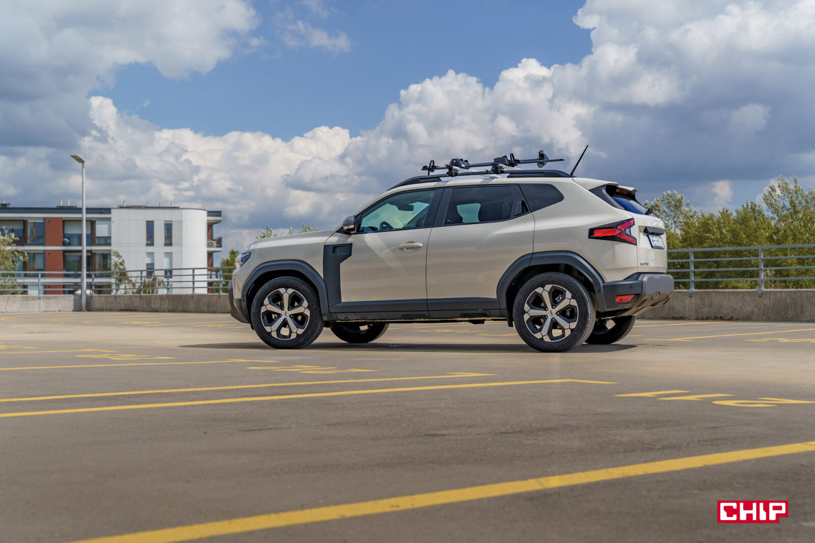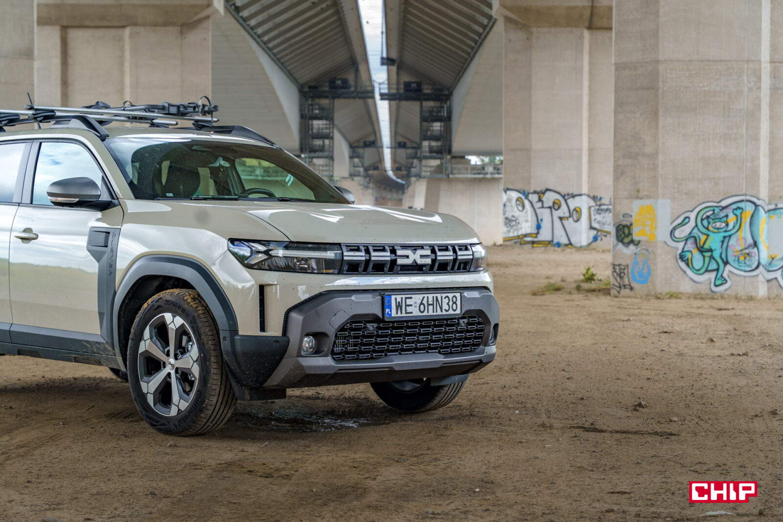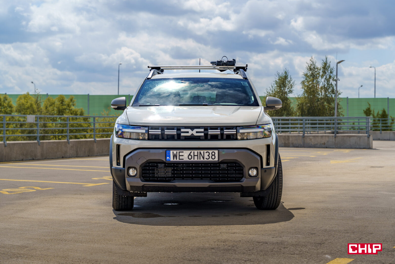 Ten samochód zrywa z łagodnymi liniami poprzedników, stawiając na kanciastą, muskularną sylwetkę, która podkreśla jego terenowy charakter. Z przodu wyróżnia się szeroki grill z jasnymi wstawkami i nowym logo Dacii, które świetnie komponuje się z kolorem Sandstone, w jakim był właśnie egzemplarz testowy, a także motyw litery „Y” w reflektorach LED, które są standardem we wszystkich wersjach. Smukłe światła do jazdy dziennej i dynamiczne kierunkowskazy dodają odrobinę nowoczesności, choć całość pozostaje wierna prostocie Dacii. Z tym, że to w końcu Dacia — więc absolutnie nie jest to problem.