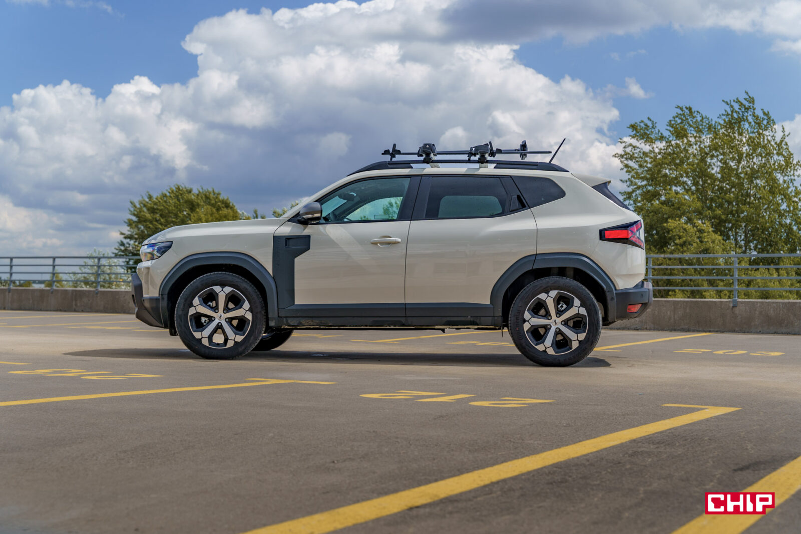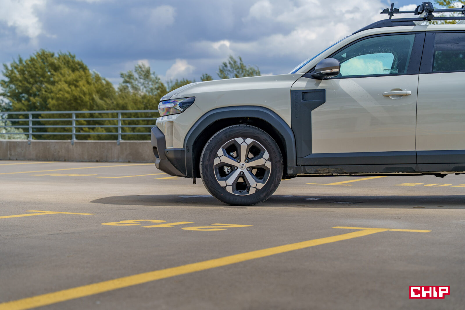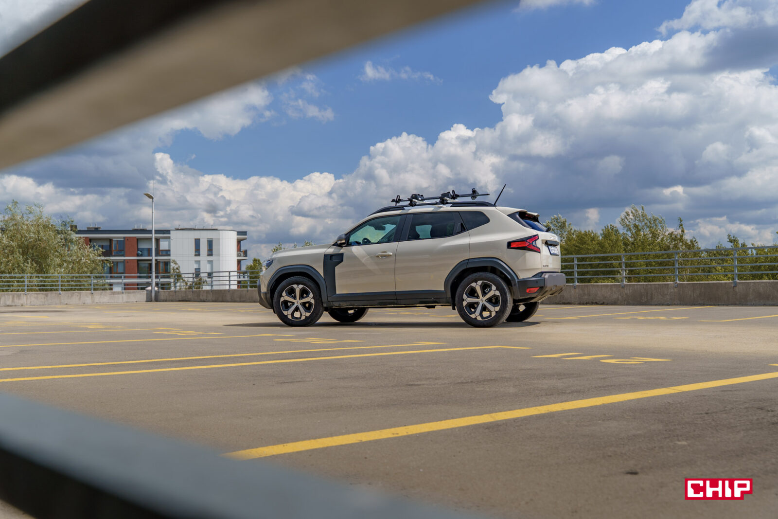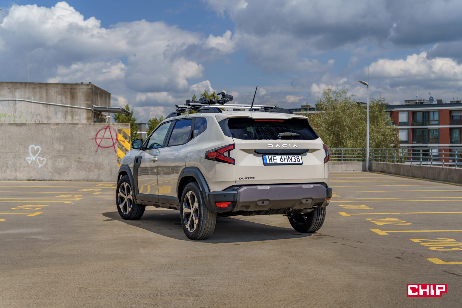 Ten samochód zrywa z łagodnymi liniami poprzedników, stawiając na kanciastą, muskularną sylwetkę, która podkreśla jego terenowy charakter. Z przodu wyróżnia się szeroki grill z jasnymi wstawkami i nowym logo Dacii, które świetnie komponuje się z kolorem Sandstone, w jakim był właśnie egzemplarz testowy, a także motyw litery „Y” w reflektorach LED, które są standardem we wszystkich wersjach. Smukłe światła do jazdy dziennej i dynamiczne kierunkowskazy dodają odrobinę nowoczesności, choć całość pozostaje wierna prostocie Dacii. Z tym, że to w końcu Dacia — więc absolutnie nie jest to problem.