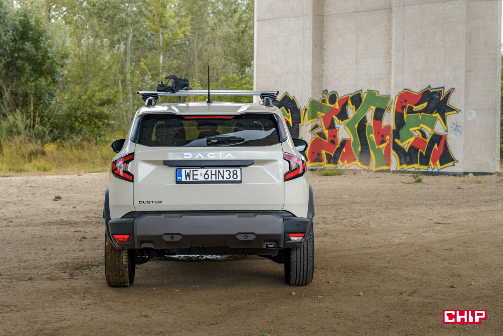 Tył jest minimalistyczny, ale pasuje do całości. Szerokie lampy LED w kształcie litery „Y”, subtelny spojler, napis Dacia i brak atrap wydechów — Dacia nie udaje, że jest sportowym SUV-em. Wymiary Dustera trzeciej generacji to 4343 mm długości, 1813 mm szerokości i 1656 mm wysokości, przy rozstawie osi 2657 mm. To kompaktowy SUV, który świetnie radzi sobie w miejskiej dżungli, ale dzięki prześwitowi nie boi się specjalnie szutrowych dróg. Brak 4×4 w Eco-G 100 to jednak nie jest specjalna przeszkoda, bo jeśli nie planujecie ekstremalnych tras, to — sam sprawdziłem — 4×2 spokojnie da sobie radę w błocie czy na dziurawych „dzikich” drogach. Z Warszawy wybrałem się tym samochodem w odmęty Polesia na polskiej granicy, więc klimaty momentami były naprawdę ekstremalne, a Duster ani razu nie złapał zadyszki.
