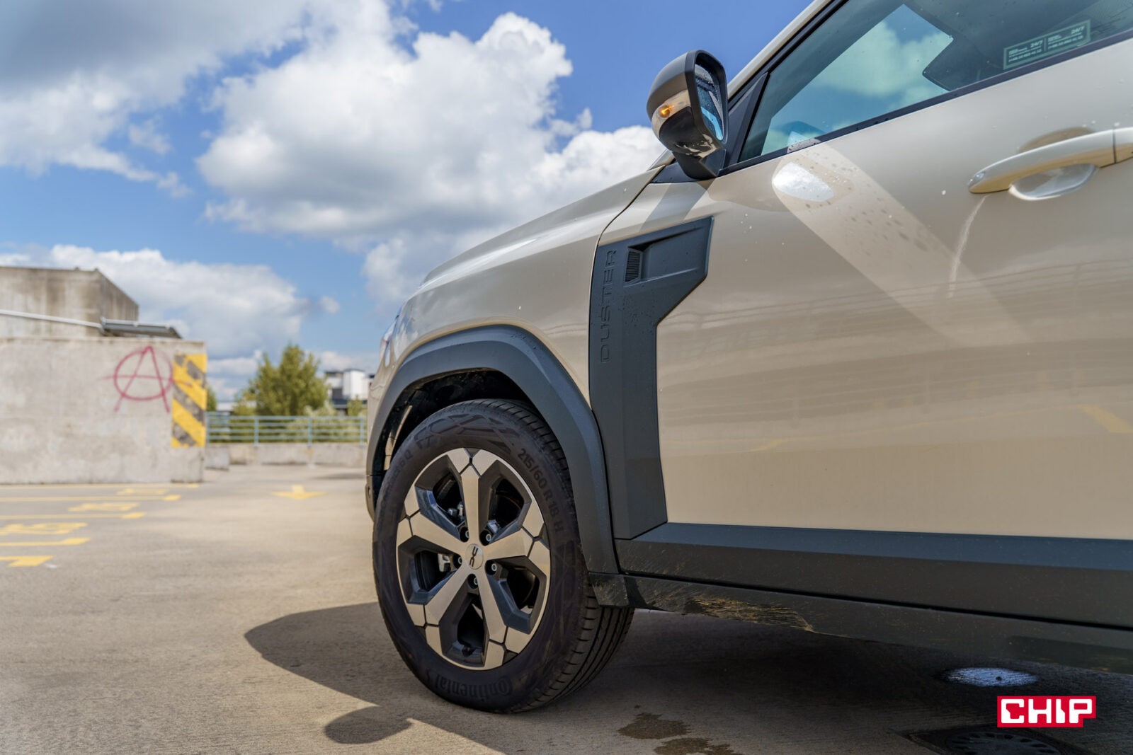 Współczynnik oporu powietrza Cd 0,37 nie jest rekordowy, ale w segmencie kompaktowych SUV-ów to akceptowalna wartość. Testowy egzemplarz we wspomnianym kolorze Sandstone z czarnymi akcentami i 18-calowymi felgami aluminiowymi TAGASAN diamentowanymi prezentował się wyjątkowo atrakcyjnie. Ten samochód zwyczajnie cieszy oko i jedyne, do czego mógłbym się przyczepić, to dość wąskie opony — co często zdarza się w samochodach rumuńskiej marki.