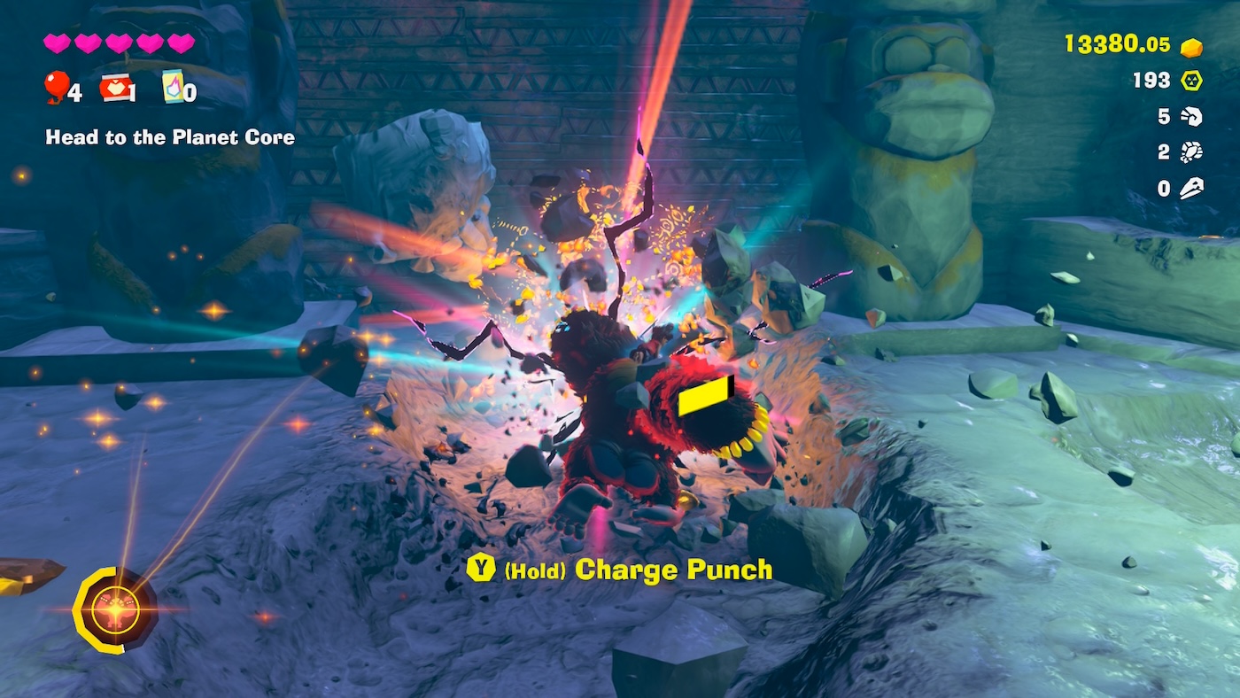 W samej rozwałce uderzenie jest autentyczną ucztą dla zmysłów — ekstremalnie satysfakcjonująca haptyka Joy-Conów 2, eksplozje odłamków na ekranie i ten dziecięcy dreszczyk radości z pozwolenia na „psucie” rzeczy po kolei to wspaniałe połączenie. Warto jednak czasem się głębiej zastanowić nad tym, co chcemy rozwalać.