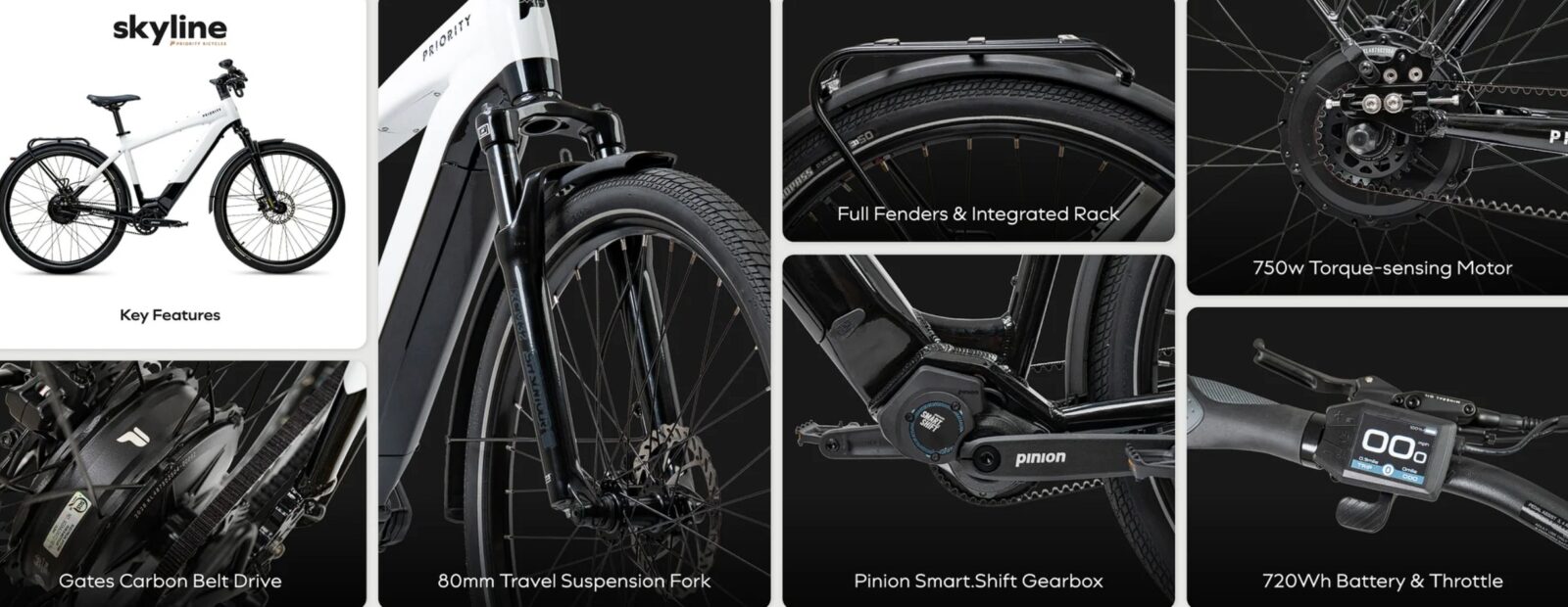 Priority twierdzi, że moc wspomagania, przełożenia i funkcje skrzyni biegów Skyline pozwalają osobom dojeżdżającym do pracy łatwiej podążać za tempem i rytmem ruchu pojazdów. Ma to automatycznie zmniejszać ryzyko na zaistnienie potencjalnych konfliktów między rowerzystami a kierowcami i tym samym uczynić wszystkie podróże po prostu bezpieczniejszymi dla rowerzysty. Nastawienie na wygodę użytkownika podkreśla również obecność paska Gates Carbon Belt Drive w miejscu łańcucha. To rozwiązanie nie tylko eliminuje smarowanie, ale działa ciszej i wymaga mniej konserwacji niż wspomniany łańcuch, a to akurat istotna zaleta przy codziennym użytkowaniu.