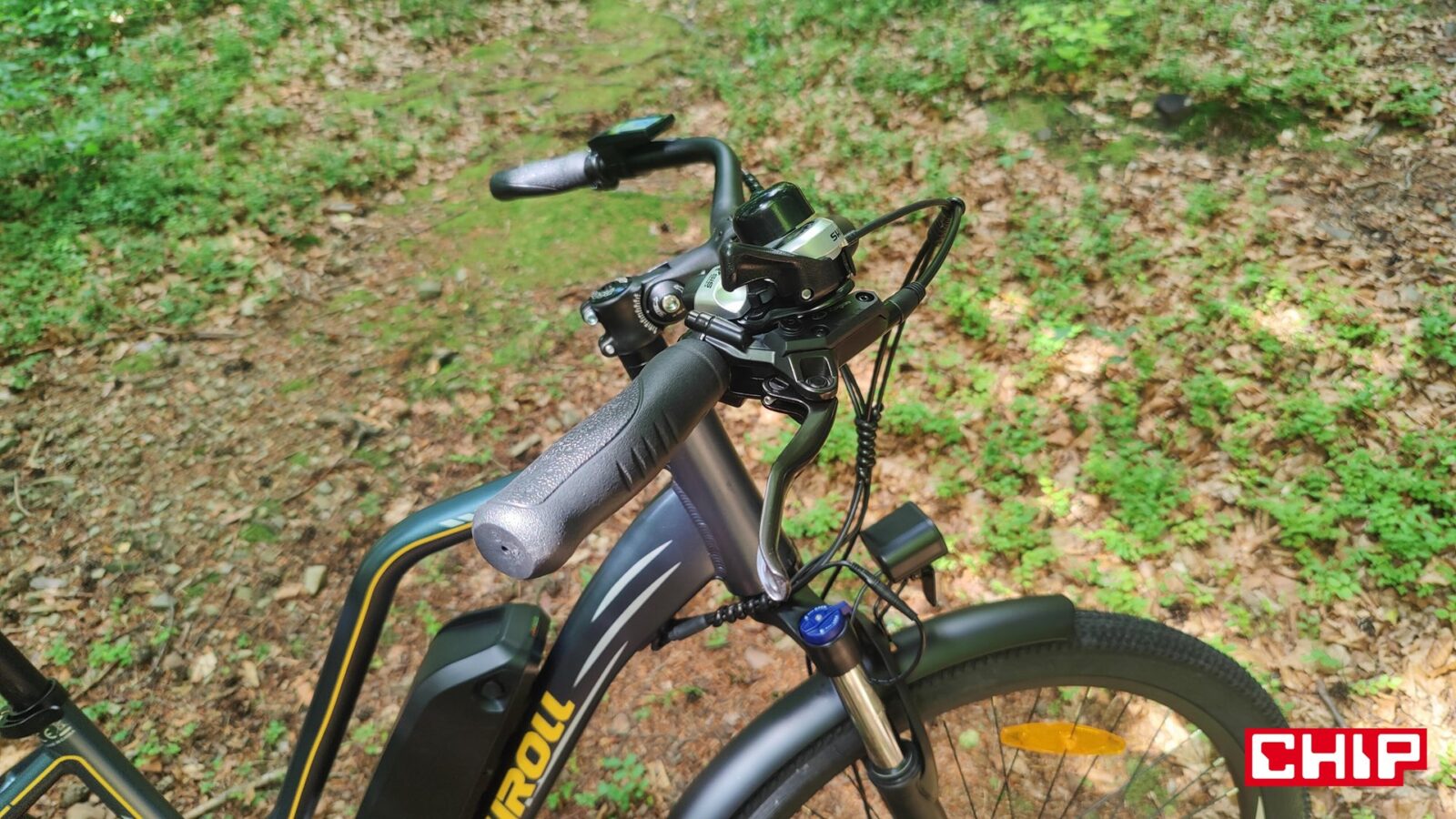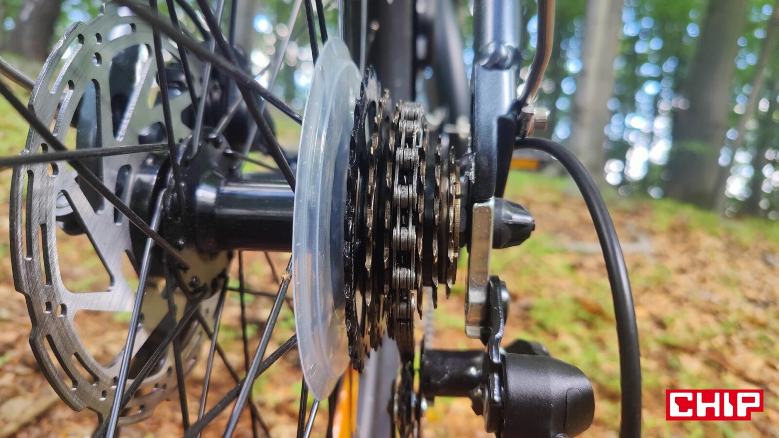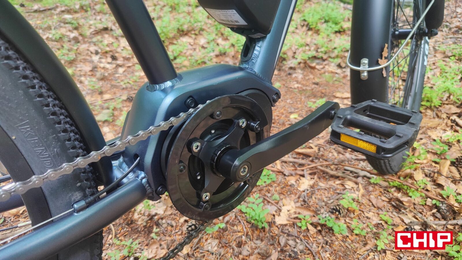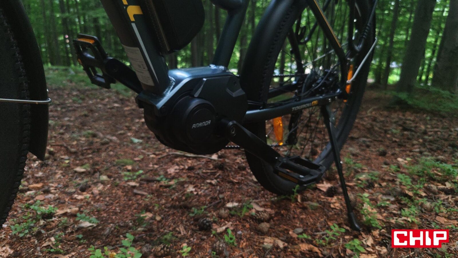Kwestia zmęczenia i prędkości jest z kolei bardzo ciekawa na tym rowerze, a to dzięki silnikowi między korbami zamiast w piaście tylnego koła. Taka konfiguracja na swoje wady i zalety, bo z jednej strony wspomaganie w takim e-bike jest bardziej naturalne i w efekcie mamy wrażenie “supermocy” w nogach, ale z drugiej… no właśnie. Mamy taką supermoc w nogach i każda zmiana przerzutki pod górkę nam o tym przypomina, a podstawowy układ napędowy to niestety nie markowa mieszanka. Wprawdzie w grę wchodzi sprawdzona, 7-biegowa grupa Shimano Tourney, ale wolnobieg (ATA) i łańcuch to już mniej markowe rozwiązania, a to oznacza, że ich zużycie będzie (najpewniej) postępować znacznie szybciej. Nie pomaga w tym (finansowo) konieczność wymiany całego tylnego koła w razie chęci pozbawienia się wolnobiegu na rzecz bardziej zaawansowanej kasety. Jest to jednak coś, co przypomni o sobie dopiero po kilku latach użytkowania roweru… a potencjalnie nawet nigdy, jeśli Touroll MA2 nie będzie zbytnio eksploatowany do granic, a rowerzysta odpowiednio o niego zadba.
