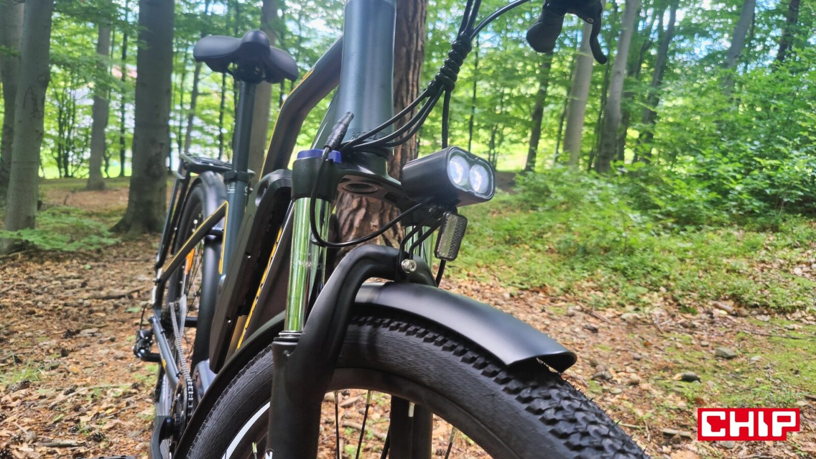Na liście plusów znajdziemy nie tylko dobrze spisujące się w terenie i tym bardziej mieście hydrauliczne hamulce tarczowe (160 mm), ale też solidne metalowe błotniki, kolorowy wyświetlacz LCD o przekątnej 1,8 cala, który wyróżnia się segmentowym paskiem mocy i procentowym wskaźnikiem naładowania akumulatora, solidny tylny bagażnik, pełne oświetlenie zasilane z głównego akumulatora oraz wodoodporność w standardzie IPX4. Całość waży 24,3 kg i po rozłożeniu mierzy 1870 × 680 × 1090 mm, a jeśli jeździcie głównie w terenie, to kilka klików umożliwi wam zniesienie blokady wspomagania z 25 na 32 km/h.