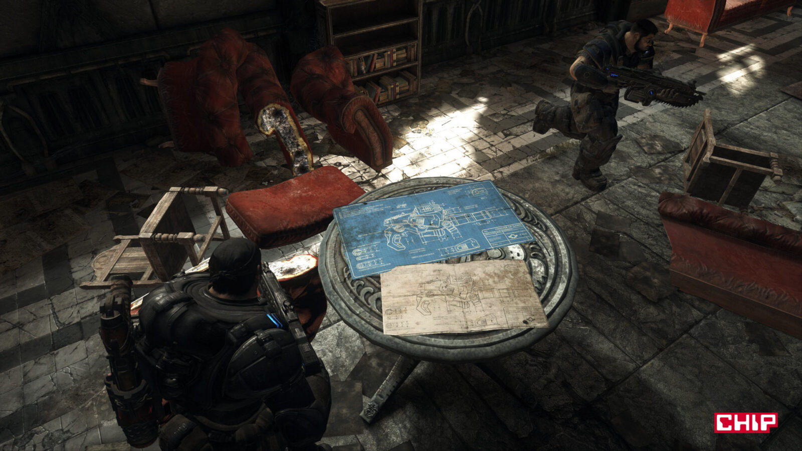 W Gears of War gramy 4-osobowym zespołem. Czasem rozdziela się na dwie pary, ale przez zdecydowaną większość gry mamy trzech kompanów. Są oni zaprogramowani tak, aby niespecjalnie nam pomagać, ale też żeby sprawiać wrażenie, że aktywnie uczestniczą w walce. Co faktycznie się sprawdza i takie wrażenie sprawia. Rozgrywka dzieli się na krótką eksplorację, która stanowi przerywnik w pacyfikowaniu kolejnych grup przeciwników.