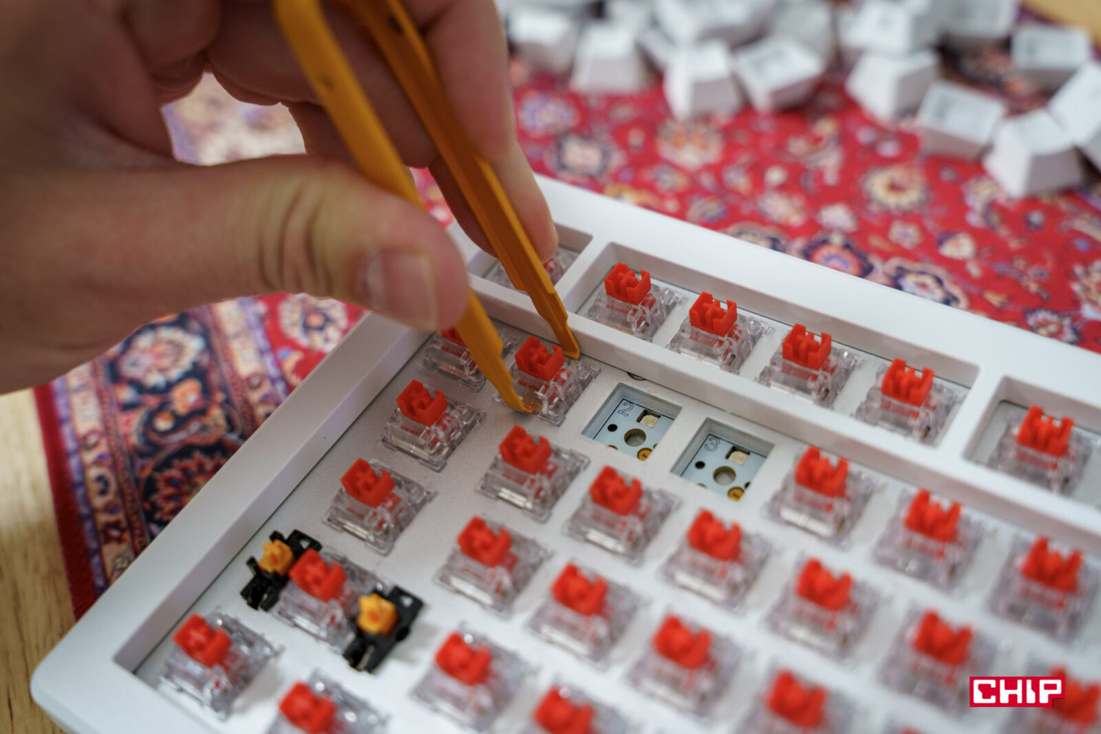 Przejdźmy teraz do elementu, który nie do końca mi się przyjął i są to mechaniczne przełączniki Panda. Są dosyć twarde i do aktywacji wymagają nacisku 67 gramów, a ich punkt aktywacji zaczyna się w okolicach 1-1,5 mm. Mocno sprężynują i do tego bardzo hałasują w trakcie użytkowania. Wymiana przełączników jest prostym, choć żmudnym zajęciem i tu można się narobić. Trzeba jednak uważać przy instalacji przełączników mechanicznych, żeby nie powyginać styków. Nie bez powodu w zestawie zawsze mamy kilka przełączników więcej, bo to niestety czasem się zdarza.