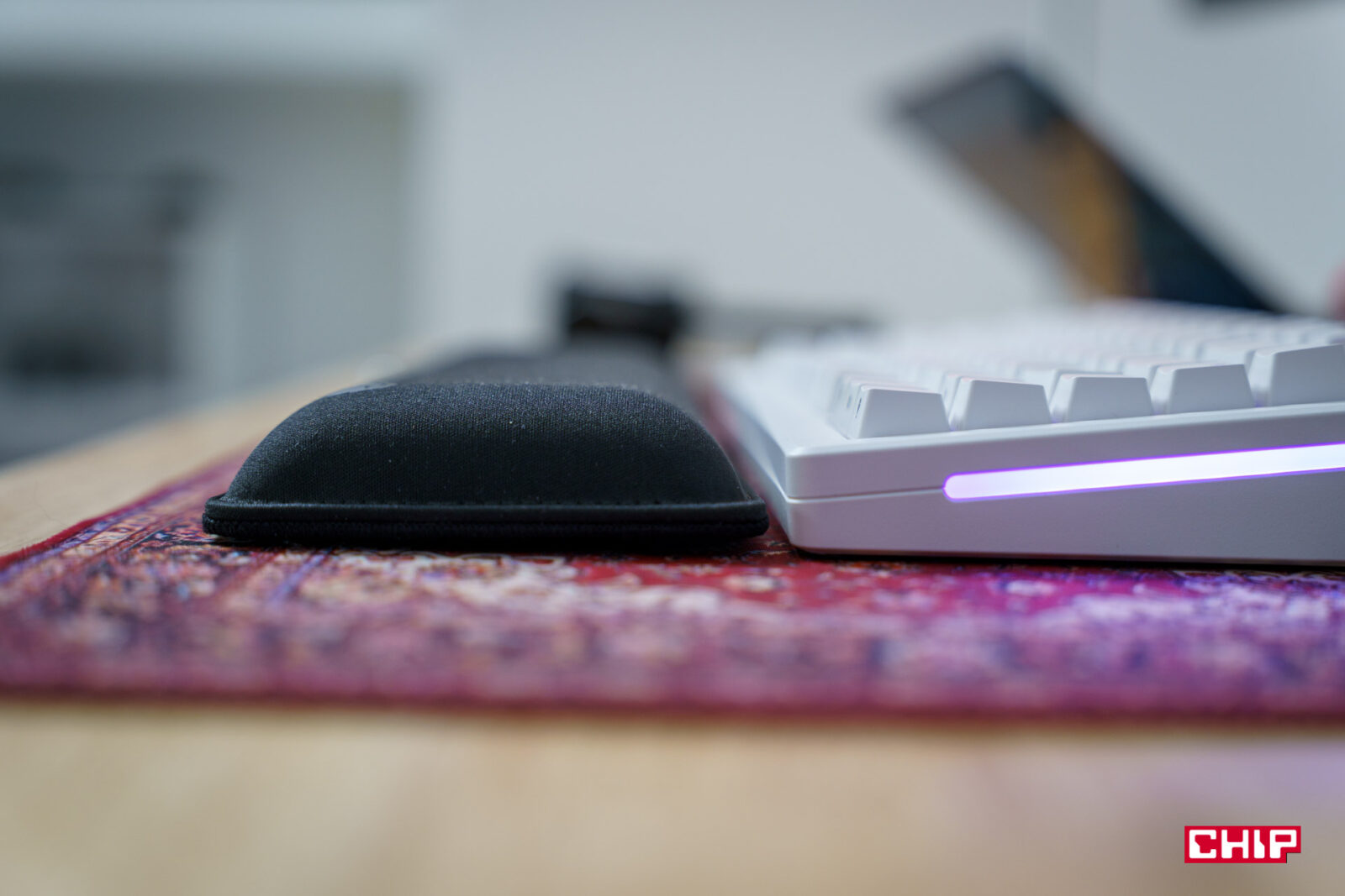 W zestawie testowym, do którego za moment wrócimy po więcej szczegółów, znalazła się też podkładka pod nadgarstki, a konkretnie Cloth Ergonomic Keyboard Wrist Rest. Przyjemna w użyciu, bardzo miękka, nie odkształcająca się po dłuższym użytkowaniu i z bardzo dobrą, antypoślizgową powierzchnią na spodzie. Na mój gust mogłaby być minimalnie niższa, o dosłownie 0,5 cm i byłaby wtedy wręcz idealna. Niemniej uważam, że to akcesorium obowiązkowe. Szczególnie w przypadku tak wysokiej klawiatury.