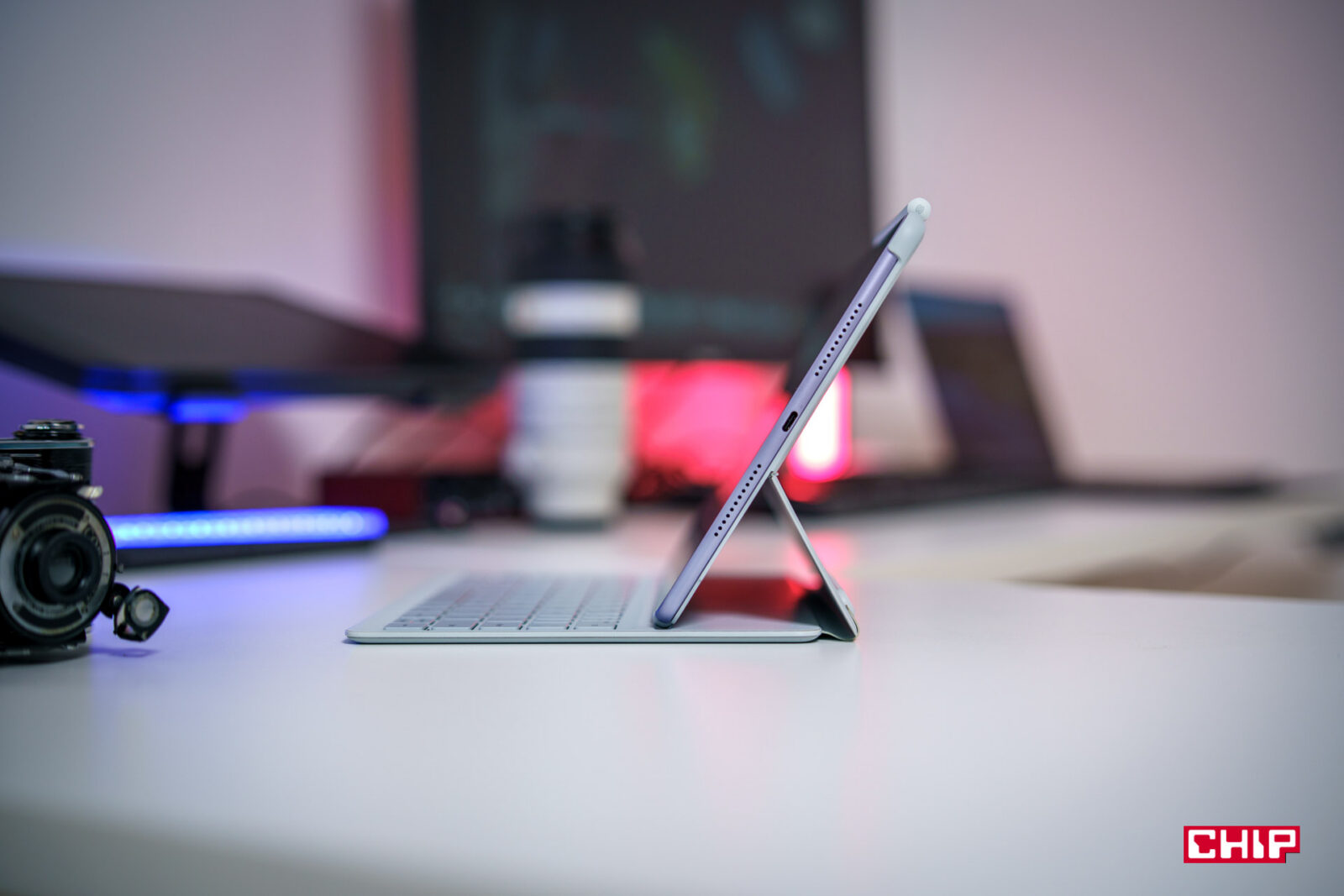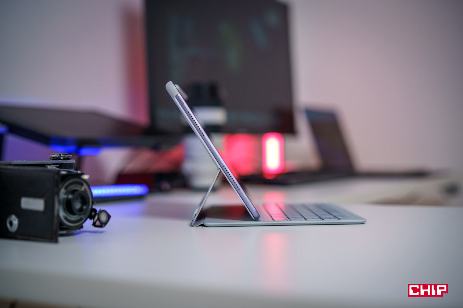 Klawiatura w kolorze białym za to jest dwuczęściowa, więc jeśli akurat nie mamy potrzeby korzystania z niej, możemy zostawić same plecki, które są ochroną na tylną część urządzenia z dodatkową nóżką/podstawką. Wygodna sprawa. Klawiatura pozostaje także połączona z tabletem nawet wtedy, kiedy jest od niego odłączona, co jest wygodne i urozmaica możliwości pracy, na przykład z tabletem na stole i klawiaturą na kolanach. Małą wadą, choć niestety standardem, jest to, że nie ma tutaj podświetlanych klawiszy.