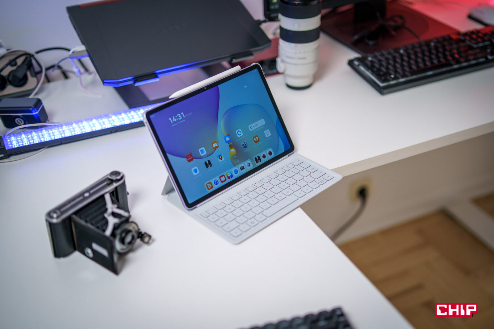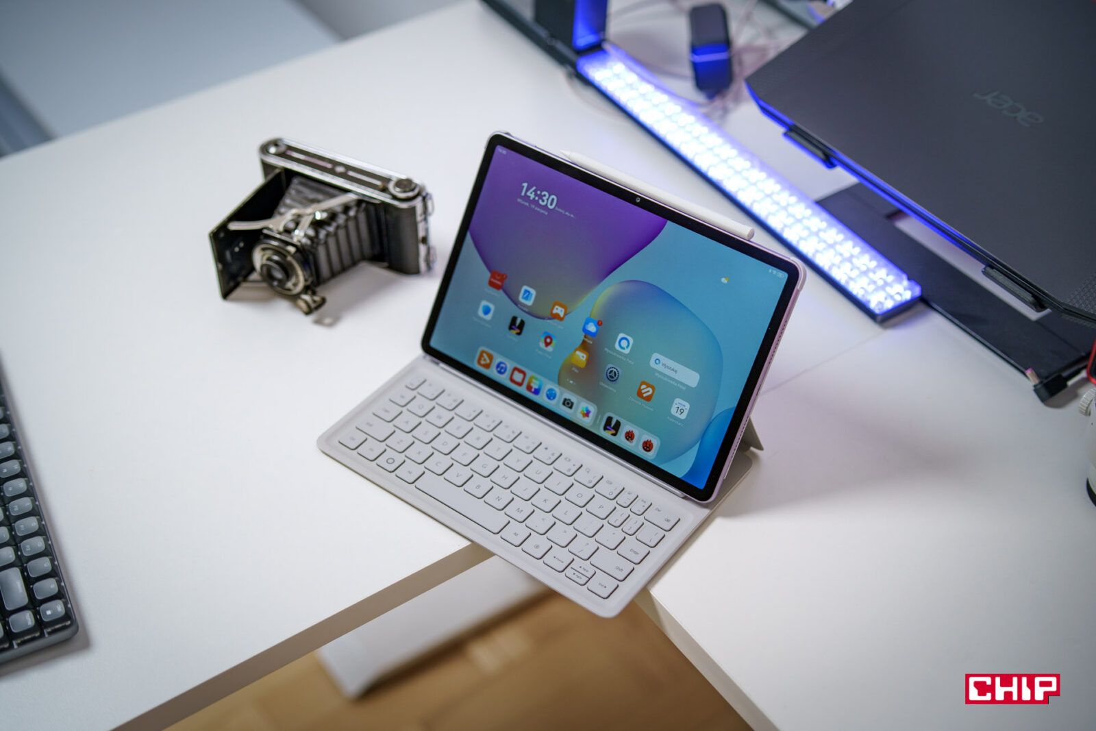 Przyzwyczailiśmy się już do tego, że zazwyczaj przy zakupie sprzętu w zestawie dostajemy absolutne minimum — czyli samo urządzenie, kabel i makulaturę. Huawei lubi jednak przełamywać te schematy — i tak samo jest w tym przypadku. Tablet możemy kupić w dwóch wariantach: albo w zestawie z klawiaturą, albo w pakiecie z klawiaturą i rysikiem. Oznacza to, że w każdej opcji będziemy mieli sprzęt gotowy do pracy i notowania.