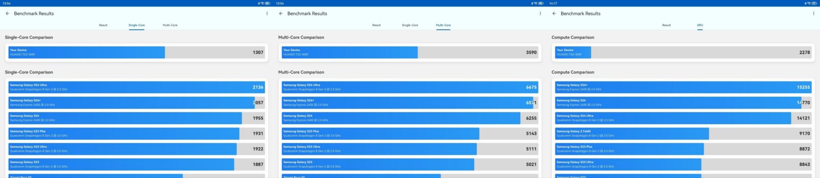 Sercem MatePada 11.5 2025 jest autorski procesor Huawei — HiSilicon Kirin T80, a wspiera go GPU Maleoon 920C. Do tego w tym roku mamy dostępny tylko jeden wariant pamięci — 8 GB RAM i 256 GB pamięci wewnętrznej. W tej klasie cenowej to rozsądna propozycja. Poniżej możecie zobaczyć wyniki testów benchmarków; chociaż Huawei średnio się z nimi lubi.