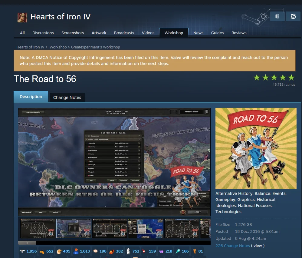 Jako przykład posłużył konflikt między twórcami modów The Fire Rises (TFR) i Loong Rising of Darkness (LROD) do gry Hearts of Iron IV. Choć strony doszły do porozumienia, roszczenie DMCA złożone przez twórców TFR nie zostało wycofane, co skutkowało trwałym usunięciem modu LROD. Co więcej, w późniejszym konflikcie to TFR stał się celem podobnego ataku. Modderzy krytykują obecny system, który ich zdaniem daje zbyt dużą władzę osobie zgłaszającej roszczenie.