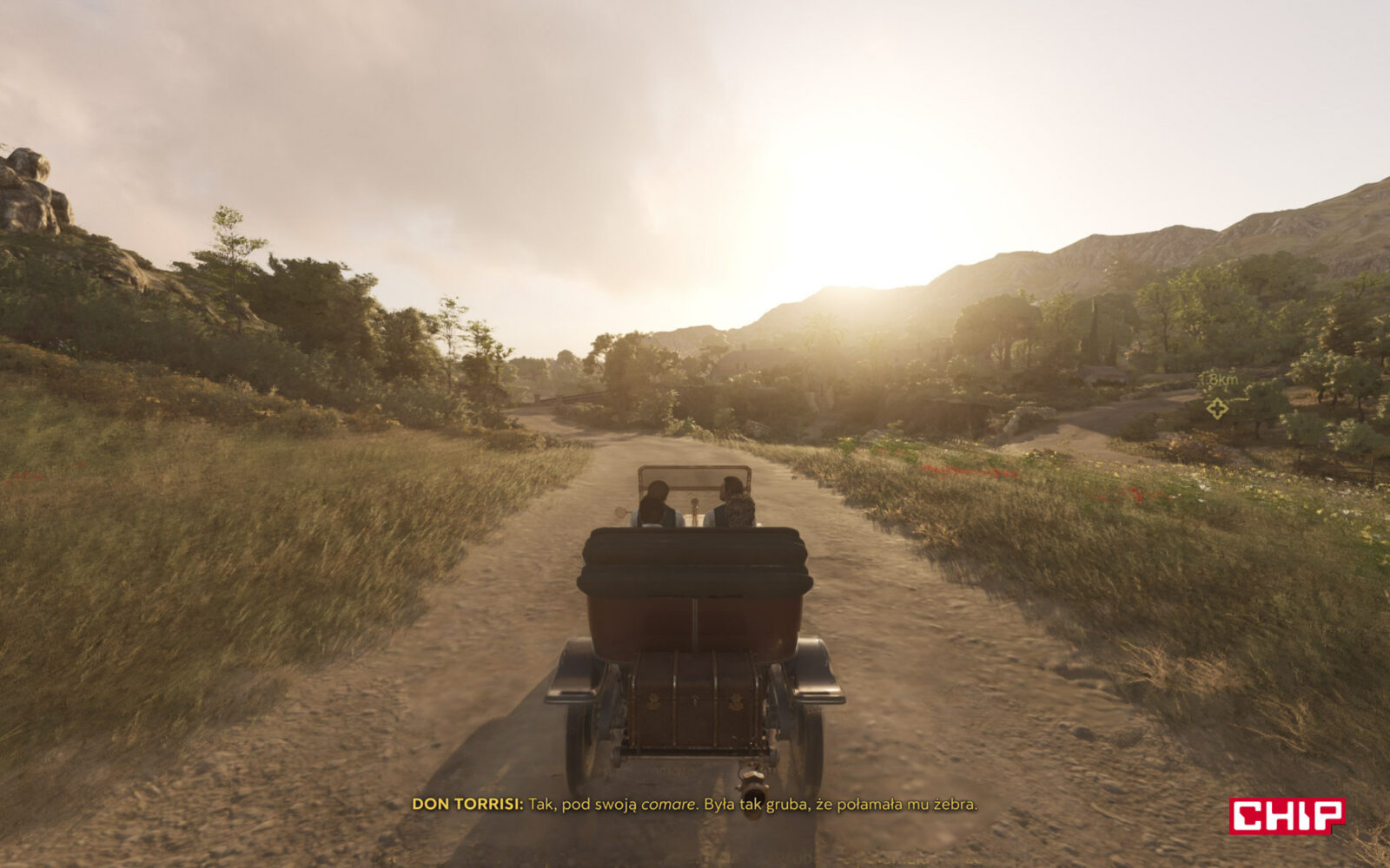 Twórcy mocno skupili się na tym, aby jak najczęściej i najmocniej była widoczna gra świateł. Wiele scen rozgrywa się przy wschodzącym lub zachodzącym Słońcu. Epickie promienie wpadające przez żaluzje lub uchylone drzwi z lekką mgłą są w nowej Mafii standardem i patrzy się na to naprawdę przyjemnie. Mówiąc w skrócie – jeśli chcecie się cieszyć ładnymi widokami to nie patrzcie pod nogi, tylko rozglądajcie się dookoła. Tym bardziej że drzewa w oddali, architektura czy górzyste tereny Sycylii potrafią cieszyć oko.