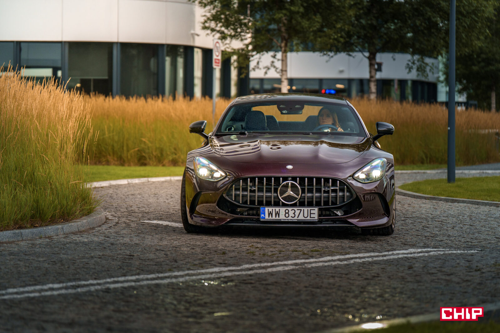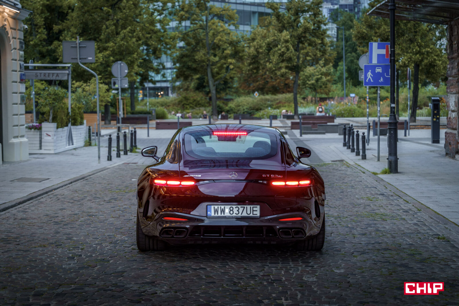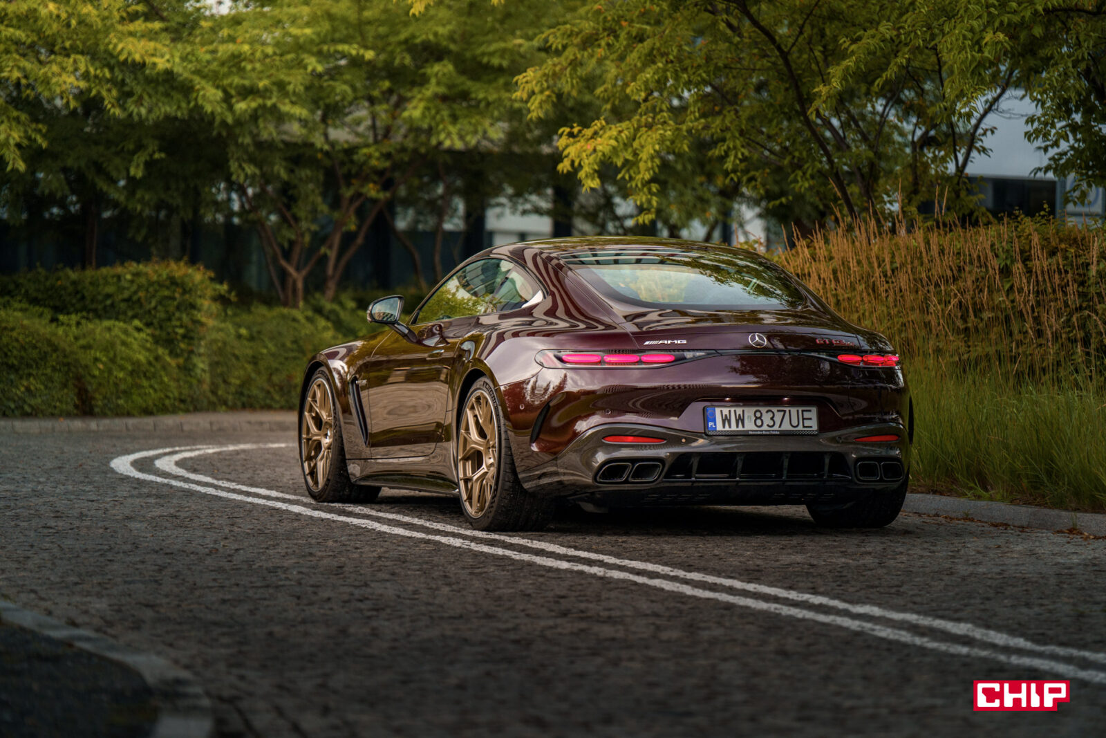 Etap drugi to Mercedes-AMG GT 63 S E Performance w trakcie poruszania się i to jest coś, co naprawdę trudno opisać, to trzeba zobaczyć. To, jak te ogromne koła suną po drodze, jak to auto wręcz wyrywa się do przodu i czeka na spuszczenie ze smyczy… Wbrew pozorom, pomimo niewielkiej wysokości Mercedes-AMG GT 63 S E Performance potrafi na drodze straszyć skuteczniej niż największe SUV-y.