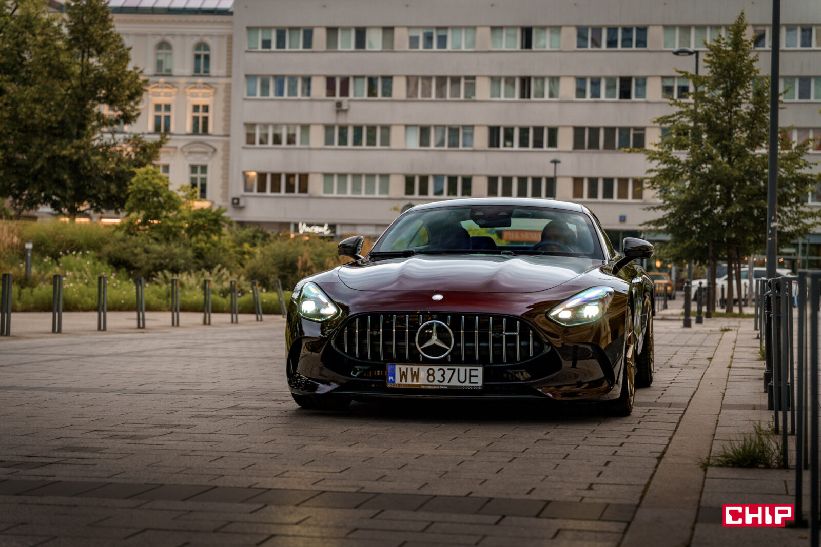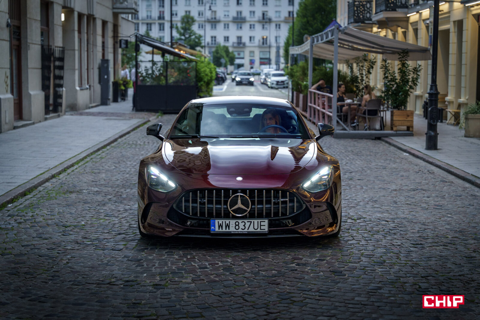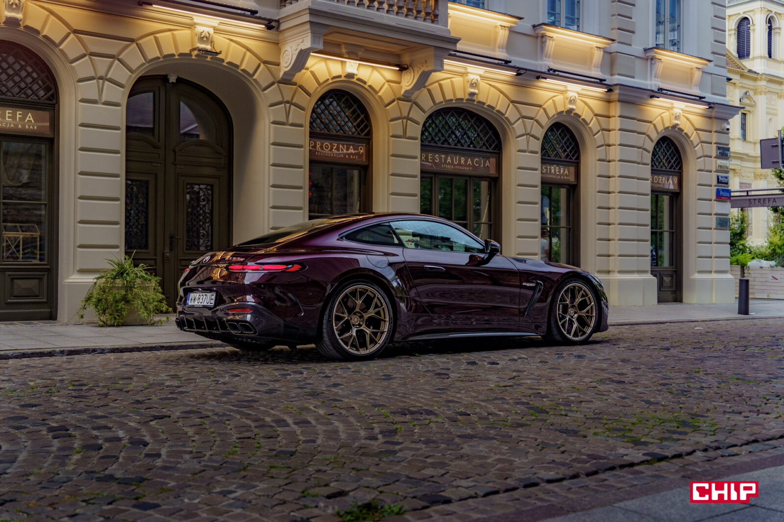 Etap drugi to Mercedes-AMG GT 63 S E Performance w trakcie poruszania się i to jest coś, co naprawdę trudno opisać, to trzeba zobaczyć. To, jak te ogromne koła suną po drodze, jak to auto wręcz wyrywa się do przodu i czeka na spuszczenie ze smyczy… Wbrew pozorom, pomimo niewielkiej wysokości Mercedes-AMG GT 63 S E Performance potrafi na drodze straszyć skuteczniej niż największe SUV-y.