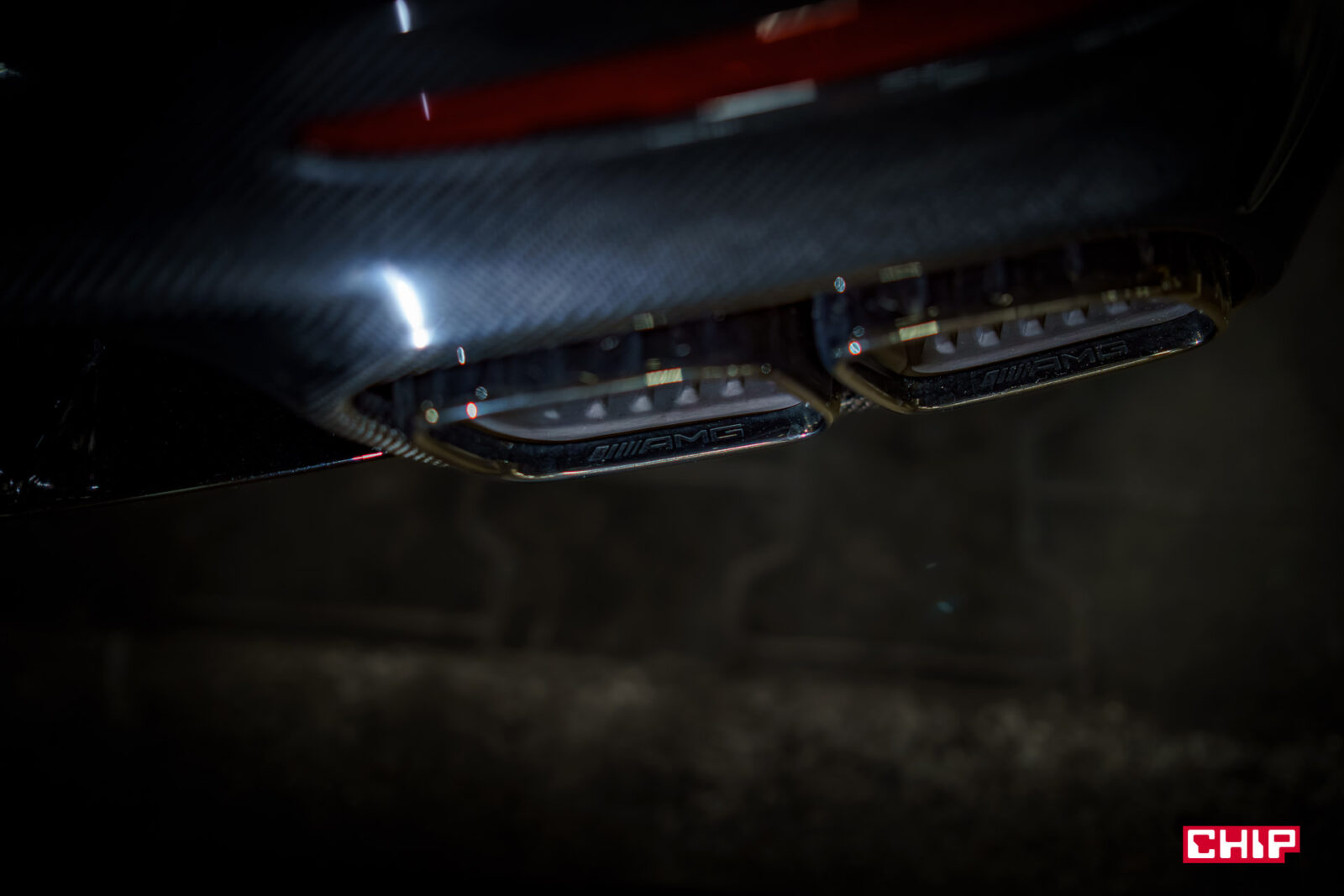 Tak jak z przodu w oczy rzucają się szerokie nadkola, tak z tyłu sprawiają wrażenie, jakby zajmowały połowę szerokości auta. Do tego mamy cztery końcówki wydechów, oczywiście z przetłoczonym logo AMG oraz bardzo nietypowe, ale też efektowne światła.