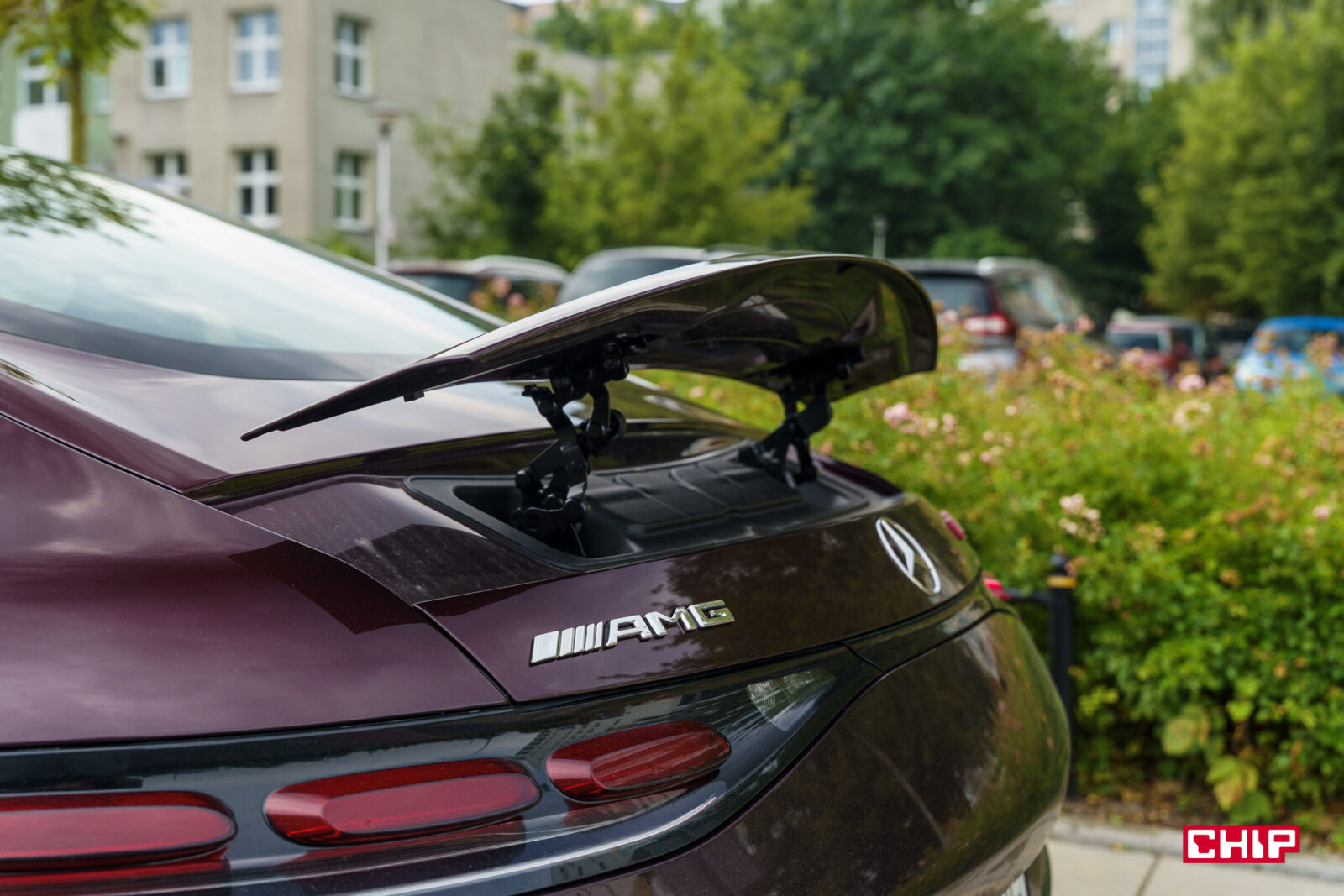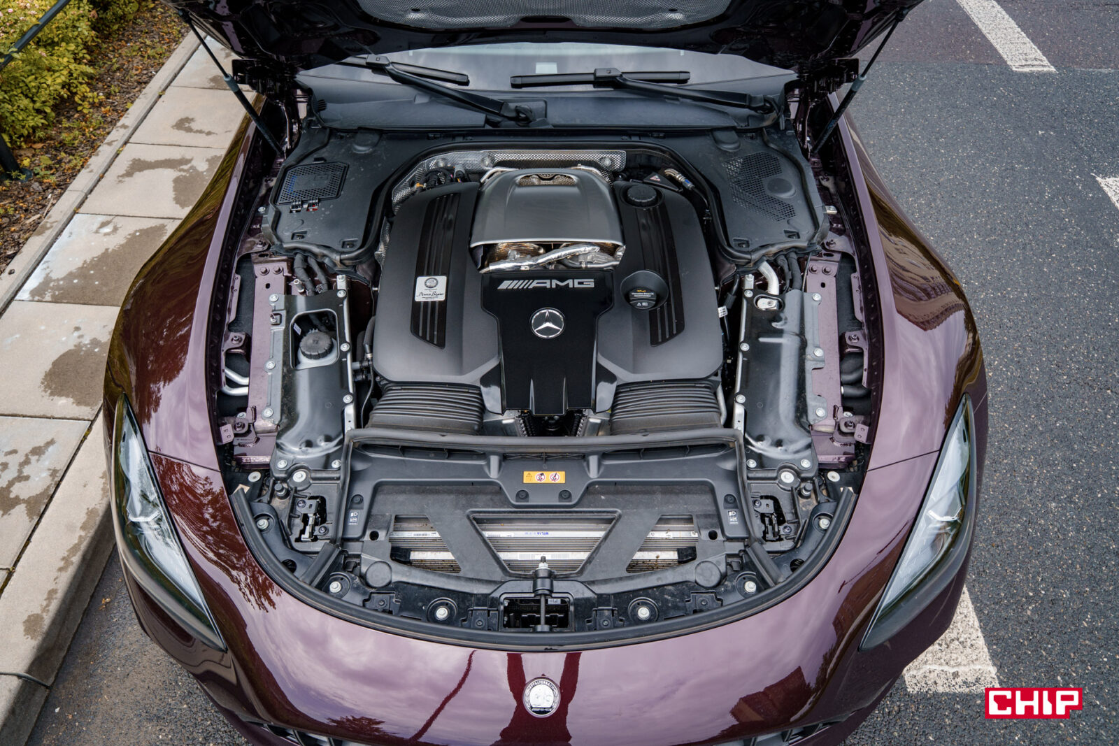 Jeżeli zastanawiacie się, po co mu w ogóle ta bateria – tak jak pisałam wcześniej, zasila silnik elektryczny, który pomaga wypchnąć AMG GT 63 S do przodu podczas ruszania, ale ma też jeszcze jedno zastosowanie. To nie jest ciche auto i dzięki obecności silnika spalinowego można nim po cichu wyjechać z garażu bez budzenia sąsiadów.