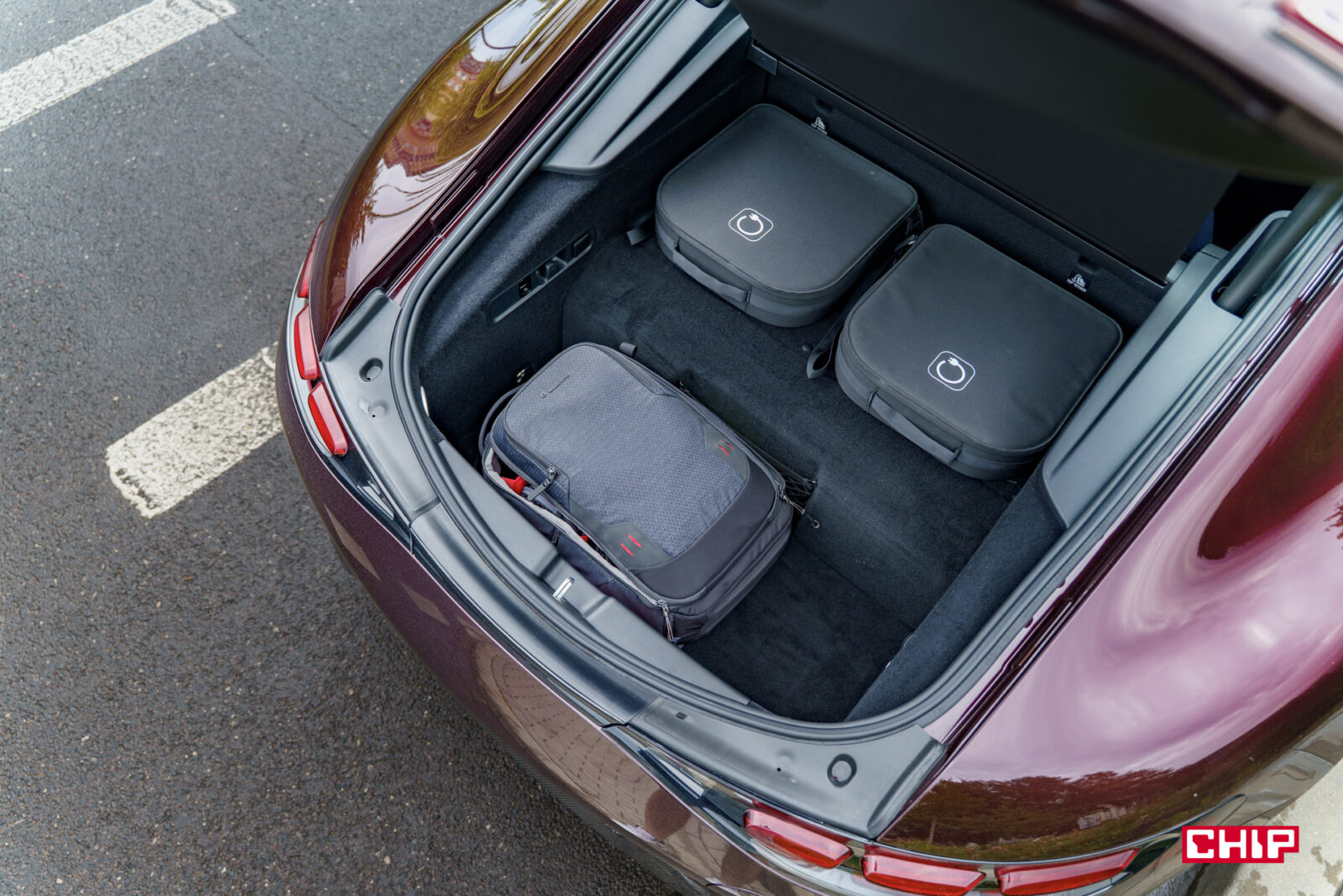 W bagażniku wariantu hybrydowego mamy do dyspozycji zawrotne 182 litry przestrzeni. Bez hybrydy rośnie to do zawrotnych 321 litrów. Bagażnik nie jest jednak aż tak mały, jak mogłoby się wydawać. Przekładając jego pojemność na walizki kabinowe, spokojnie zmieścimy tu cztery sztuki. O ile tylko pozbędziemy się kabli do ładowania, które jak się zaraz dowiecie, są w zasadzie zbędne.