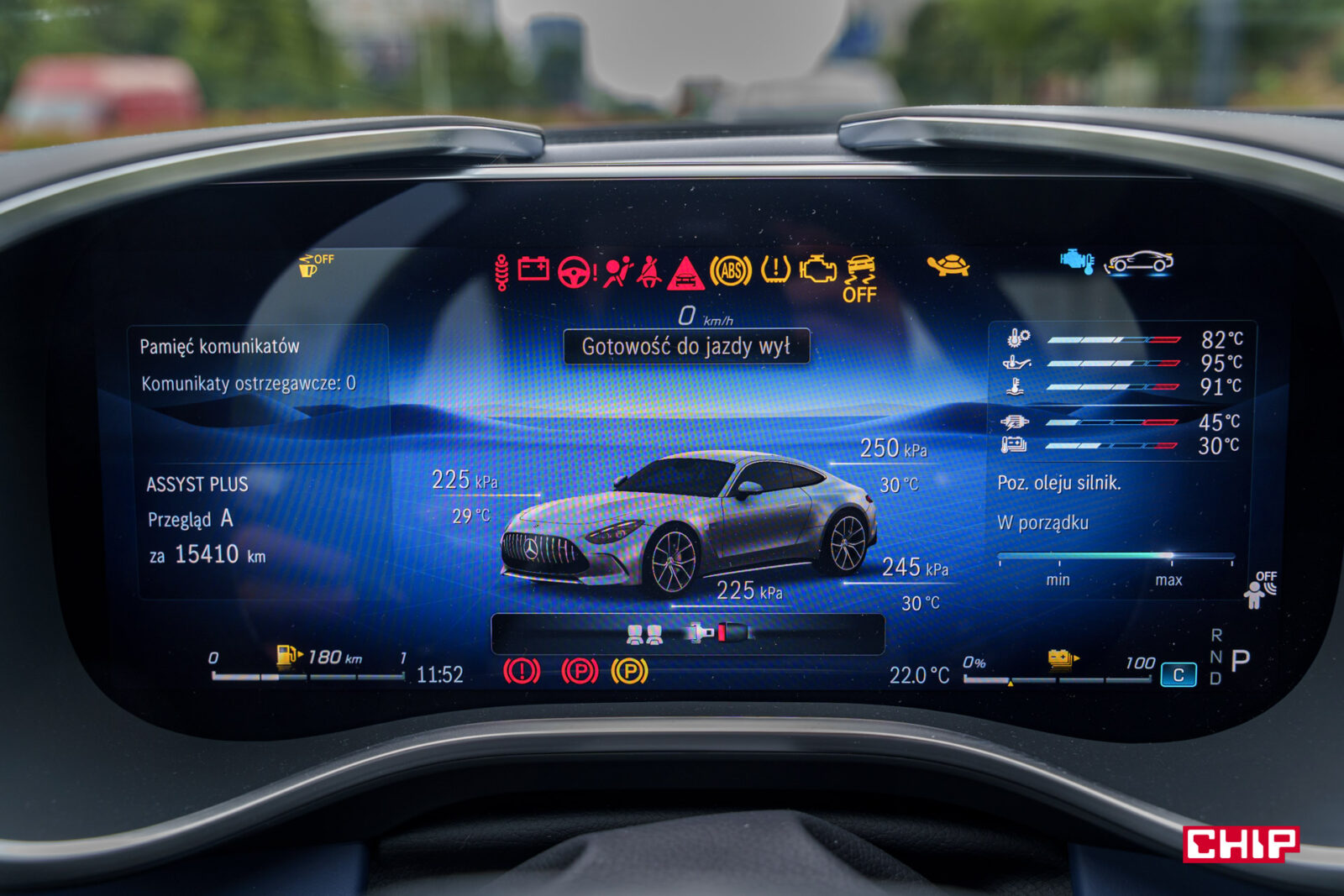 Patrząc pod kątem zastosowanych technologii, AMG GT 63 S E Performance nie jest tym, co Mercedes ma najlepszego do zaoferowania. Nie ma tu najnowszej wersji systemu MBUX, brakuje kilku najnowszych funkcji, takich jak automatyczne wyprzedzanie podczas jazdy na tempomacie. Tylko kto będzie w takim aucie korzystać z tempomatu?