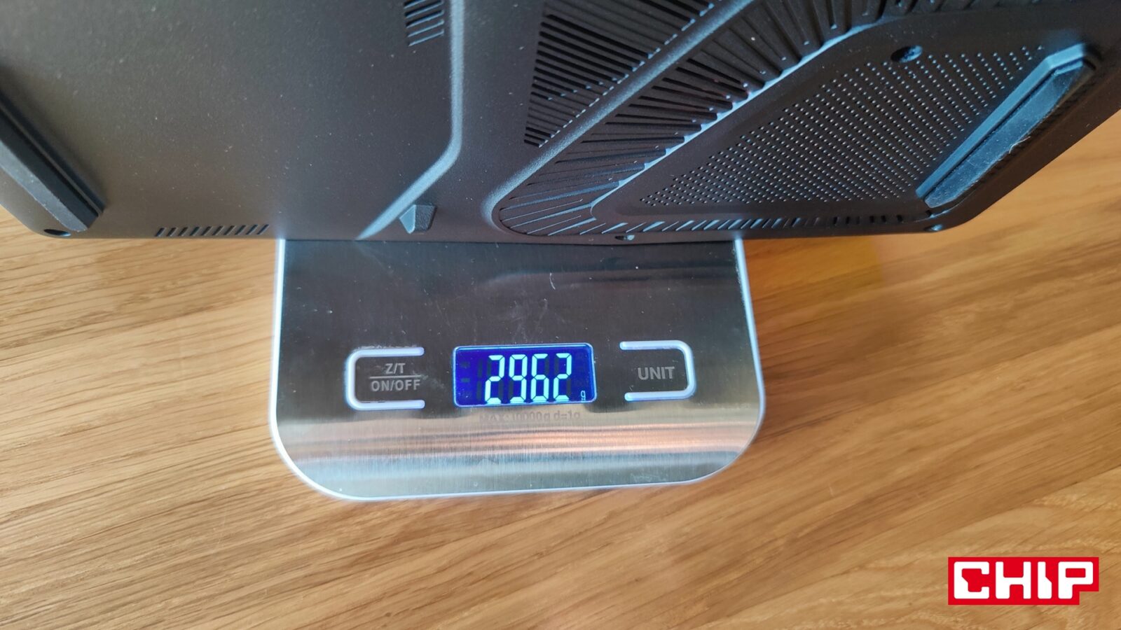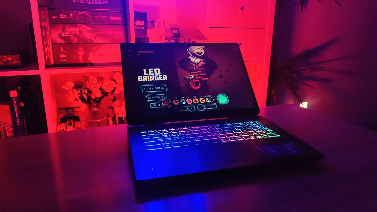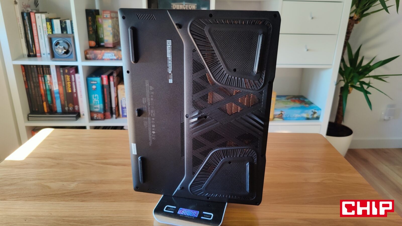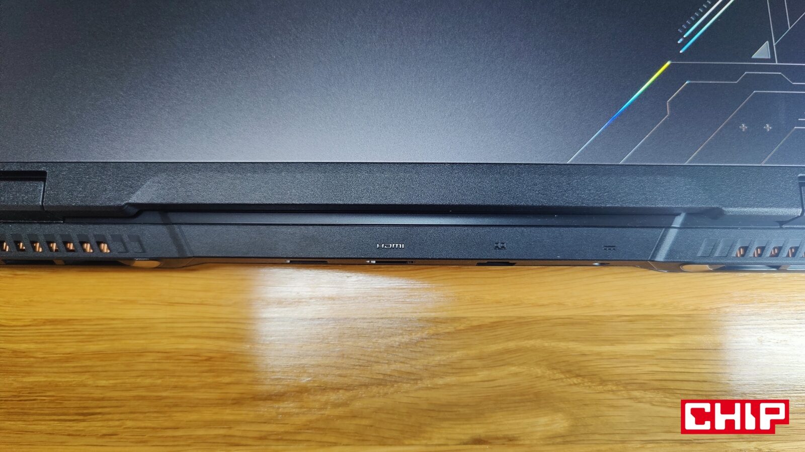 Musicie też mieć z tyłu głowy, że gabaryty laptopa i forma jego obudowy na spodzie nie powstały z myślą o łatwym przenoszeniu go tam i z powrotem, więc jest to ewidentnie “bardziej stacjonarny laptop”. Granie w trybie ekstremalnej wydajności powoduje też rozgrzewanie się układów do temperatury ponad 100 stopni Celsjusza, co przekłada się na odczuwalny w grach spadek płynności, choć postawienie na mniej agresywne tryby (AI i zrównoważony) sensownie balansuje wydajnością oraz poziomem hałasu, co potwierdzają testy porównawcze w Cyberpunku 2077. Cichy to ten sprzęt jednak po prostu nie jest, więc dobre słuchawki to podstawa.