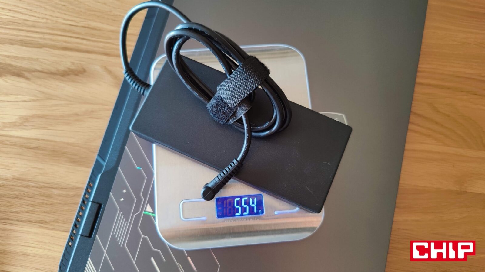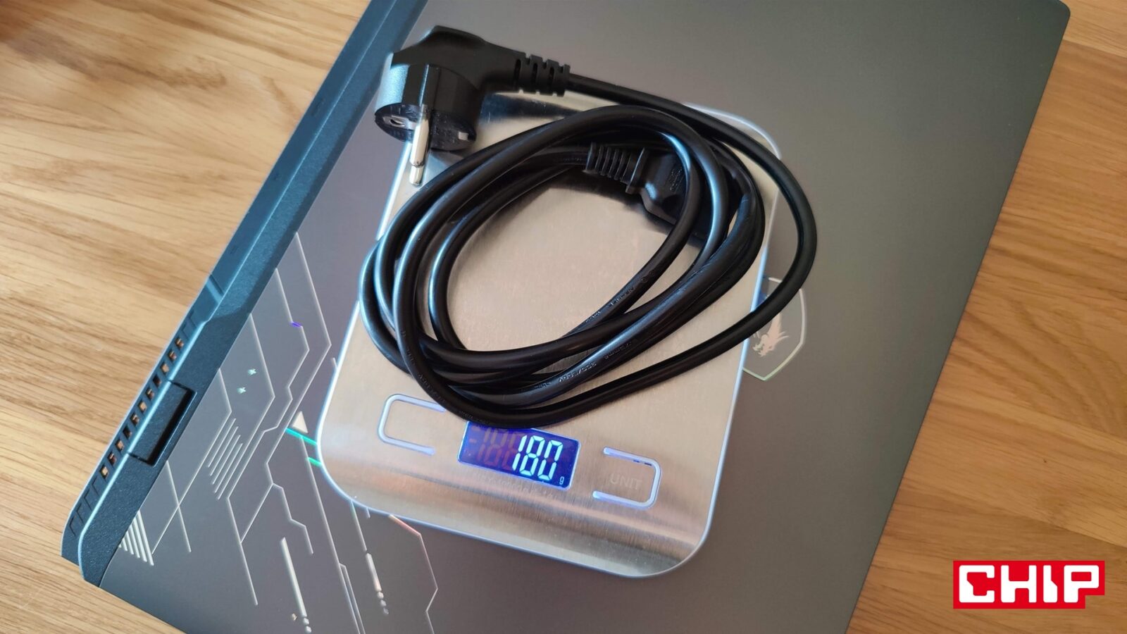 MSI Crosshair 17 HX AI (D2XWGKG) to 17-calowy laptop, który ewidentnie powstał po to, aby połączyć gamingowy charakter z praktycznymi detalami do pracy na co dzień. Obudowa nie udaje ultrabooka. Wymiary 38,3 × 27,9 × 2,2-2,9 cm i masa na poziomie prawie 3 kg (o 150 gramów więcej niż podaje producent) mieszczą się w klasie 17-calowych konstrukcji tego typu, choć odbiegają oczywiście od notebooków. Zabranie ze sobą 240-watowej ładowarki dorzuca do bagażu kolejne ponad 730 gramów.