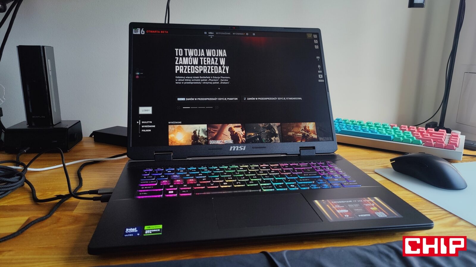Najwięcej czasu na MSI Crosshair 17 HX AI D2XWGKG-006XPL spędziłem w grze Battlefield 6 i doborowe towarzystwo nie było jedynym elementem składowym, który zapewnił mi kilka godzin świetnej zabawy. W takim dynamicznym FPS-ie laptop spisał się wzorowo i choć brakowało mi czerni znanej na co dzień z panelu OLED, ciszy i przyjemnego chłodu na palcach, to z wszystkimi technologiami NVIDIA udało się grać w płynności oscylującej między 180-220 FPS. Throttling? Jak najbardziej wystąpił, ale były to okazjonalne spadki, a nie większe ścinki wynikające z przegrzewania się. Na niskie temperatury jednak nie liczcie – poziom ponad 100 stopni Celsjusza jest tutaj normą.