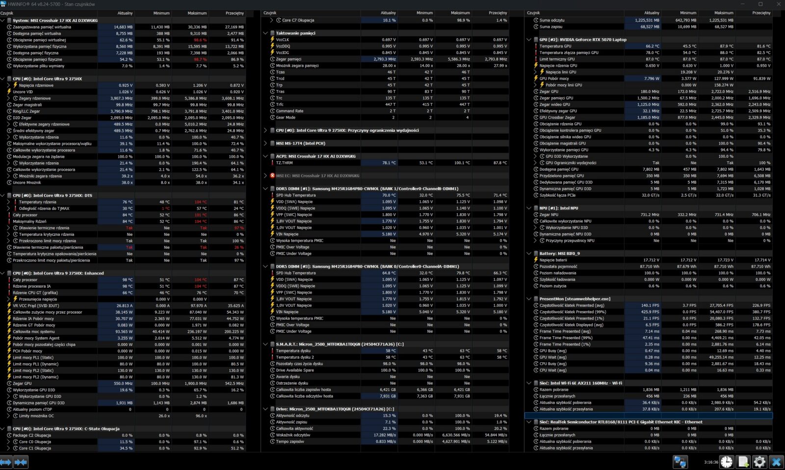 Topowa wydajność ukryta w MSI Crosshair 17 HX AI D2XWGKG-006XPL? No, niespecjalnie
