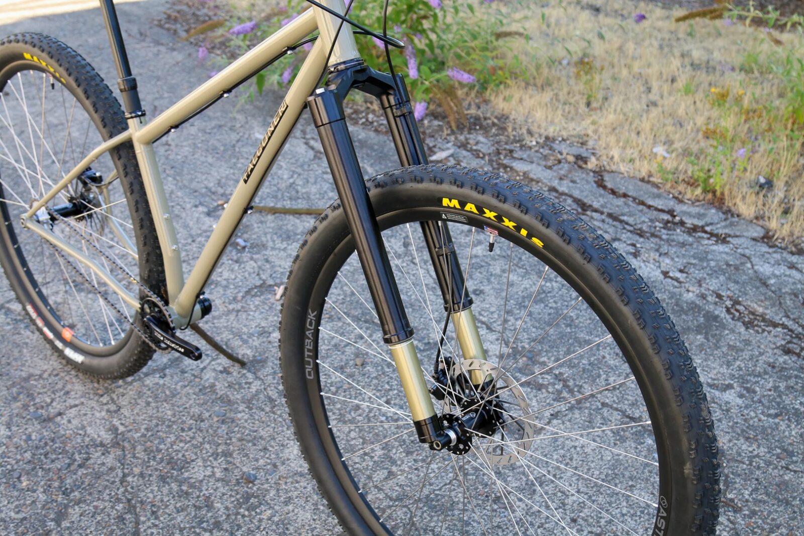 Druga ważna kwestia to dostępność części dla takich rowerów, a i tutaj sporo się dzieje. Astral powiększył profil obręczy Outback, żeby szybko zbudować kompletne obręcze, a Maxxis pokazał opony Aspen w prawdziwym rozmiarze 32, co sugeruje realną produkcję, a nie prototyp na półkę. Widelce na razie są głównie customowe, ale kilka marek pracuje nad seryjnymi formami. Firma White Industries testuje rozwiązania na standardzie Boost, podczas gdy konstrukcje dla bardzo wysokich kolarzy idą w szersze rozstawy. Docelowy standard najpewniej ukształtuje się pomiędzy tymi podejściami.