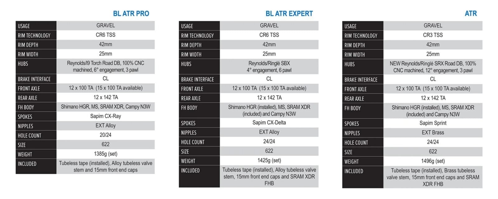Nowe obręcze są kompatybilne z najpopularniejszymi standardami bębenków, w tym Shimano HG, MicroSpline, SRAM XDR oraz Campagnolo N3W. Wszystkie wersje wykorzystują hamulce tarczowe Centerlock i osie przelotowe 12 mm, z dołączonymi adapterami 15 mm do przedniego koła. Dlaczego “wersje”? Ano dlatego, że Reynolds oferuje trzy modele obręczy z identycznym ułożeniem włókna węglowego CR6, które różnią się głównie piastami i szprychami. Podstawowy ATR Expert waży 1496 gramów i wykorzystuje piasty Ringlé SRX Road DB z trzema zapadkami oraz 30 punktami zaczepienia. To najtańsza opcja w ofercie, wyposażona w szprychy Sapim Sprint i mosiężne wentyle bezdętkowe. Średni wariant BL ATR Expert waży 1425 gramów i oferuje kute piasty Ringlé Super Bubba X Road DB z sześcioma zapadkami oraz 90 punktami zaczepienia, a także aerodynamiczne szprychy Sapim CX-Delta z aluminiowymi końcówkami. Flagowy model BL ATR Pro waży z kolei 1385 gramów i jest wyposażony we frezowane piasty Industry Nine Torch Road DB, wykorzystuje mniej szprych (20 z przodu, 24 z tyłu) typu Sapim CX-Ray i oferuje najszybsze zaczepienie z sześcioma zapadkami i 60 punktami zaczepienia.